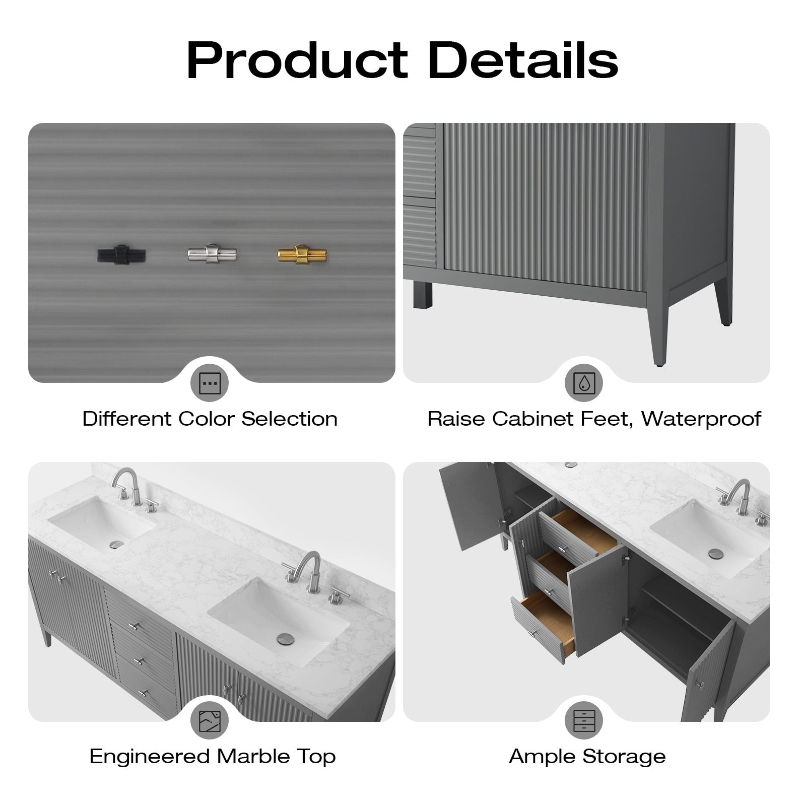 Vanity Art presenta il mobiletto da bagno con lavabo in materiale solido di alta qualità. È il perfetto connubio tra funzionalità e stile per la tua casa. Questo pezzo essenziale offre un ampio spazio di archiviazione, con ripiani rimovibili per mantenere i tuoi effetti personali organizzati e facilmente accessibili. Realizzato pensando alla praticità, il nostro mobiletto con lavabo vanta un elegante piano di lavoro Ariston che non solo aggiunge un tocco di eleganza, ma è anche facile da pulire. Il lavabo dalla forma regolare completa il piano di lavoro, creando un look armonioso e accattivante per il tuo bagno. Costruite per durare, le ante dei nostri mobili con lavabo sono dotate di cerniere di alta qualità, che garantiscono un funzionamento fluido e affidabile. La versatilità è fondamentale: i nostri mobili con lavabo non si limitano al bagno. Con il loro design elegante e le caratteristiche funzionali, sono la soluzione perfetta per un mobile da cucina con lavabo.