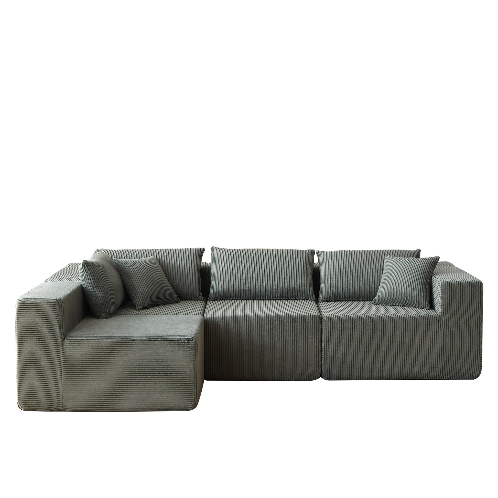 Divano componibile modulare a forma di L in velluto a coste da 104 pollici, set di divani da pavimento, divano compresso imbottito in schiuma, combinazione libera di 4 pezzi