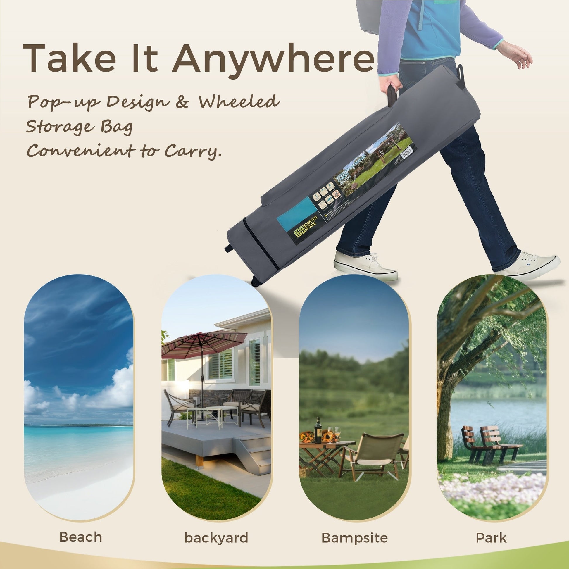 【3 diverse altezze disponibili】 : dotato di pulsanti anti-pizzicamento su ogni gamba. Basta regolare con il pulsante per ottenere la copertura d'ombra preferita. Il telaio in acciaio verniciato a polvere offre la massima resistenza e durata.