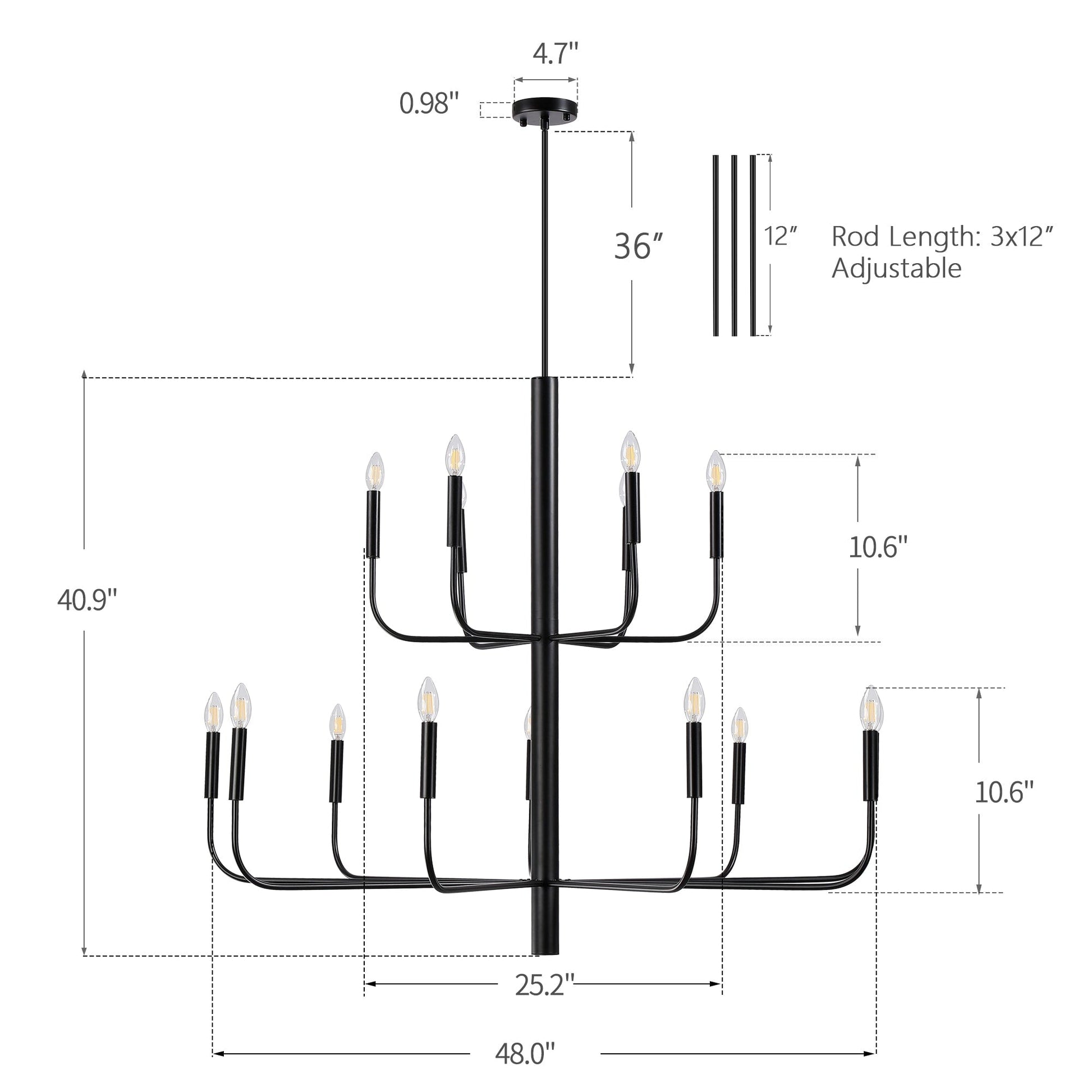 Illuminazione: 15 lampadine richieste, attacco E12, 60W 120V, varie scelte (lampadina non inclusa)