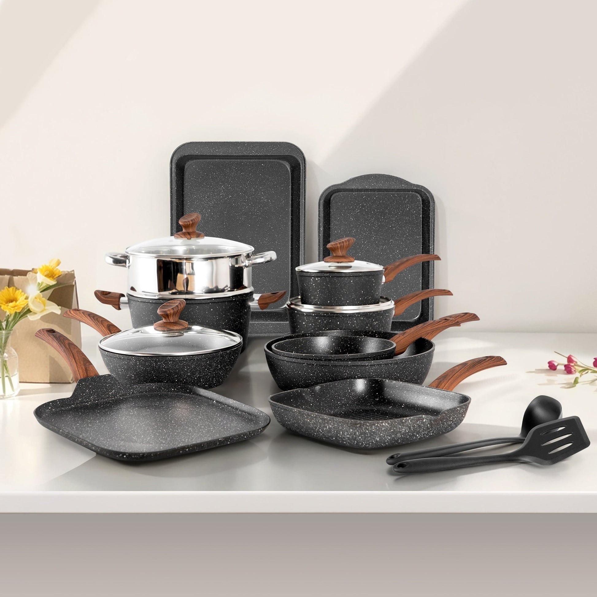 Set di pentole e padelle antiaderenti in granito da 17 pezzi