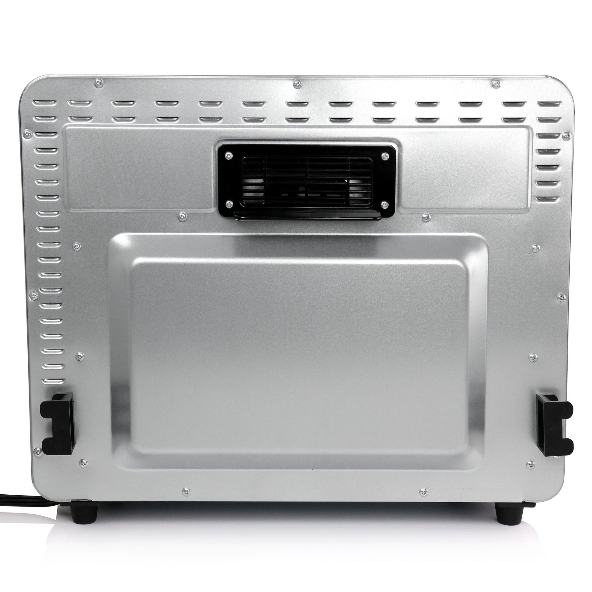 Con il forno tostapane multifunzione Air Fryer, puoi fare molto di più. Il design elegantemente progettato è pensato per la praticità e la precisione, con 21 funzioni preimpostate che ti eviteranno ogni dubbio in cucina. Display digitale estremamente versatile con manopole facili da usare e 21 funzioni preimpostate: patatine fritte, ali di pollo, bistecca, pizza, verdure, toast, griglia, cuoci al forno, arrostisci, disidrata e molto altro. Utilizzando la tecnologia di circolazione dell'aria calda a 360 gradi, il forno tostapane Air Fryer può offrirti snack e pasti più deliziosi e sani. Ampia capacità di 25 litri per pollo intero e pizze surgelate, ma elegante e compatto per adattarsi a qualsiasi cucina. Interno facile da pulire e vassoio raccogli briciole rimovibile sul fondo. Forno multifunzione Capacità: 25 L Potenza: 1800 W Tensione: 120 V-60 Hz Elementi: 6 Preset: 21 Materiale: acciaio inossidabile Timer: 12 ore Temperatura: 100-450 gradi Fahrenheit Spina: 3 pin U Dimensioni articolo: 17 x 18 x 14,50 Dimensioni interne: 14,5 x 12 x 8 Contenuto della confezione: Un forno tostapane multifunzione con friggitrice ad aria Un cestello per friggitrice ad aria Una teglia Una griglia per forno Un vassoio raccogli briciole Manuale utente