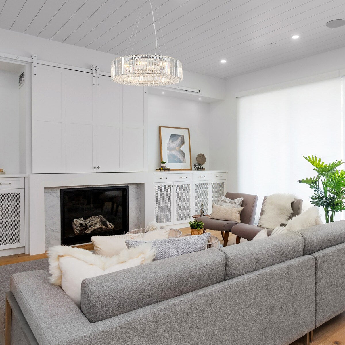 Design elegante: caratterizzato da una forma a tamburo realizzata in ferro e cristallo, questo lampadario trasuda eleganza e raffinatezza, aggiungendo un tocco di lusso a qualsiasi spazio