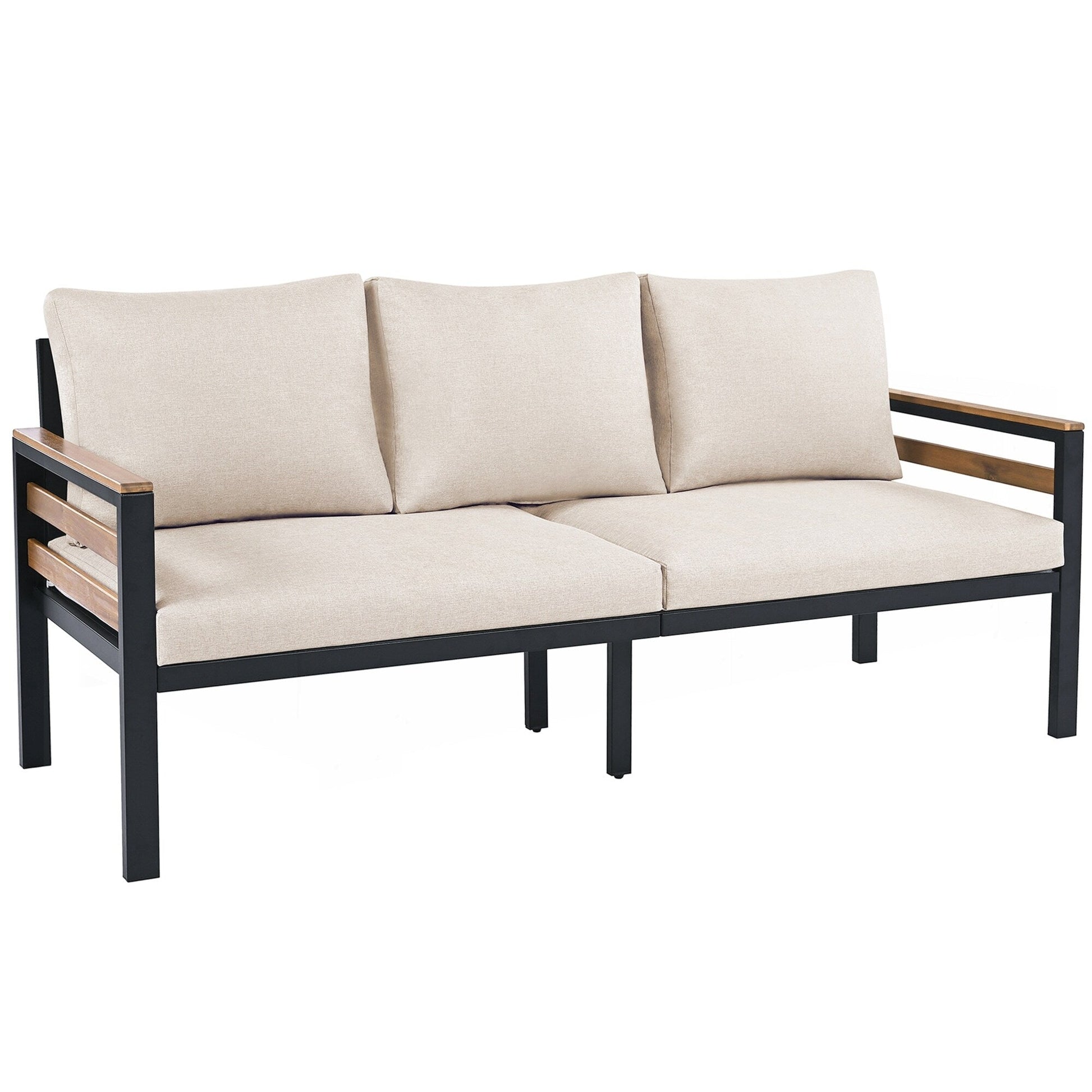 Set completo da 4 pezzi: include un divano a 3 posti (capacità di 800 libbre), 2 sedie singole (400 libbre ciascuna) e un tavolino da caffè in legno di acacia (capacità di 220 libbre).