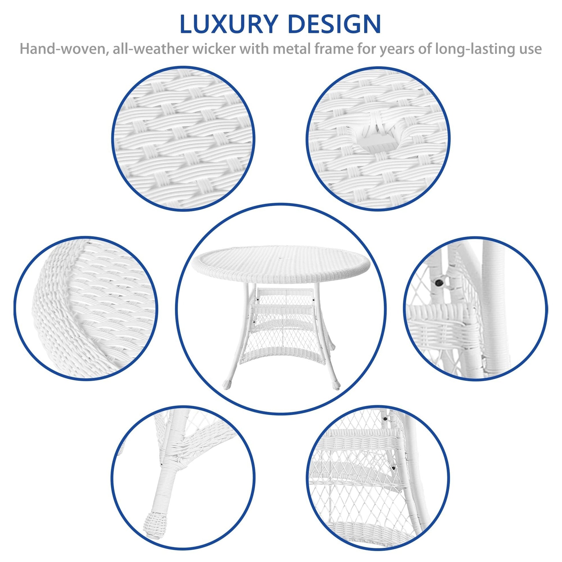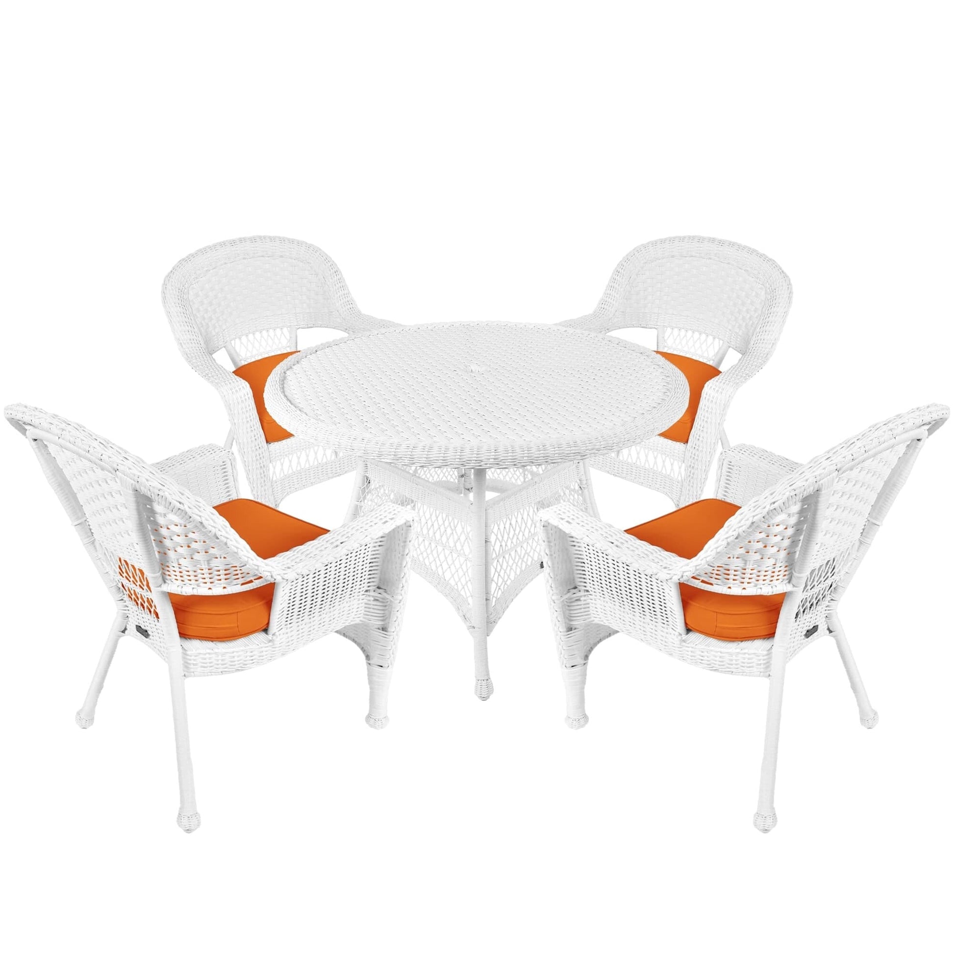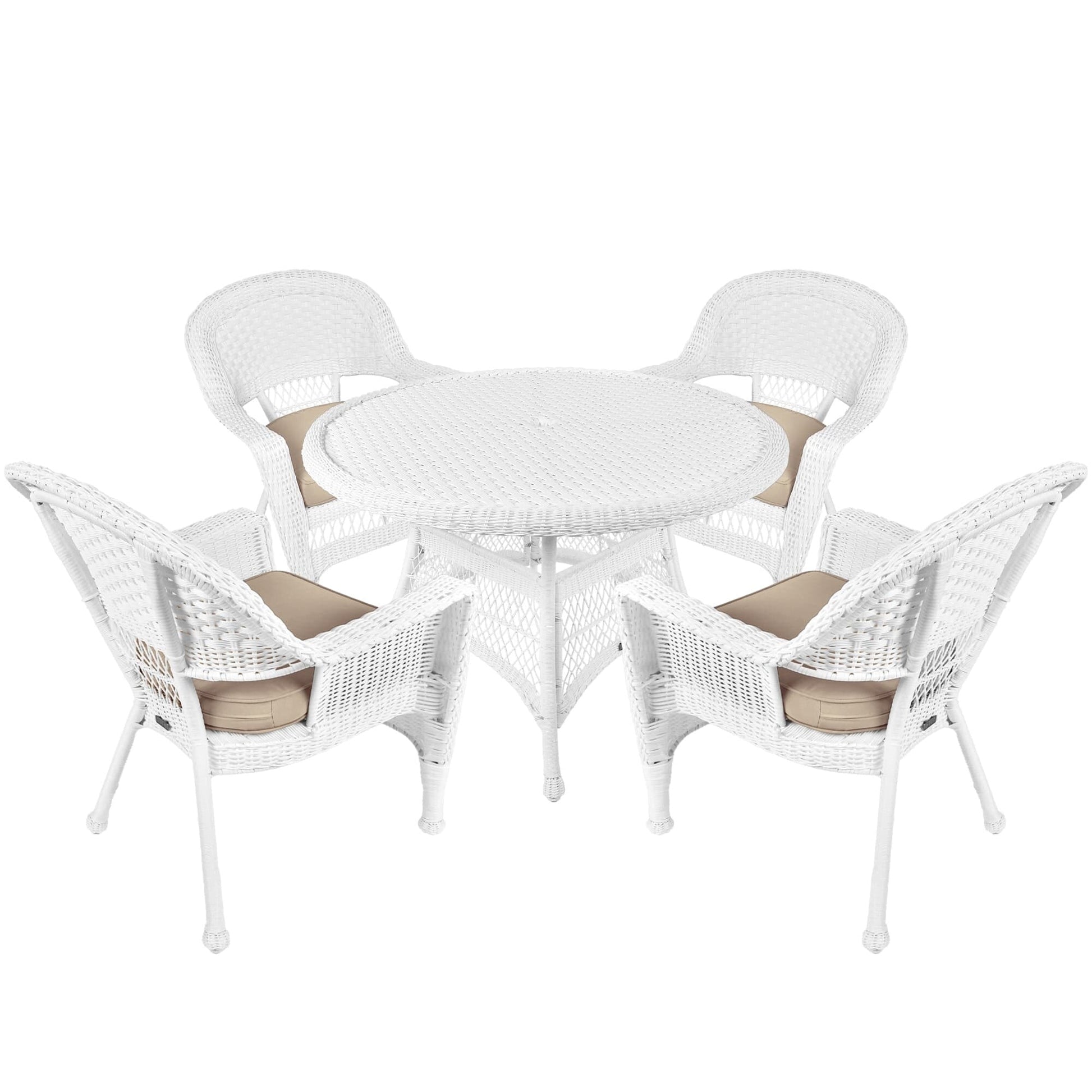 Rendi il tuo spazio esterno più confortevole con questo set da pranzo in vimini e resina bianca da 5 pezzi. Goditi il comfort della vita in casa con questo elegante set in vimini, composto da un tavolo rotondo in vimini e quattro sedie con morbidi cuscini disponibili in vari colori. Il set è costruito per durare grazie alla sua struttura in acciaio e al vimini in resina resistente alle intemperie.