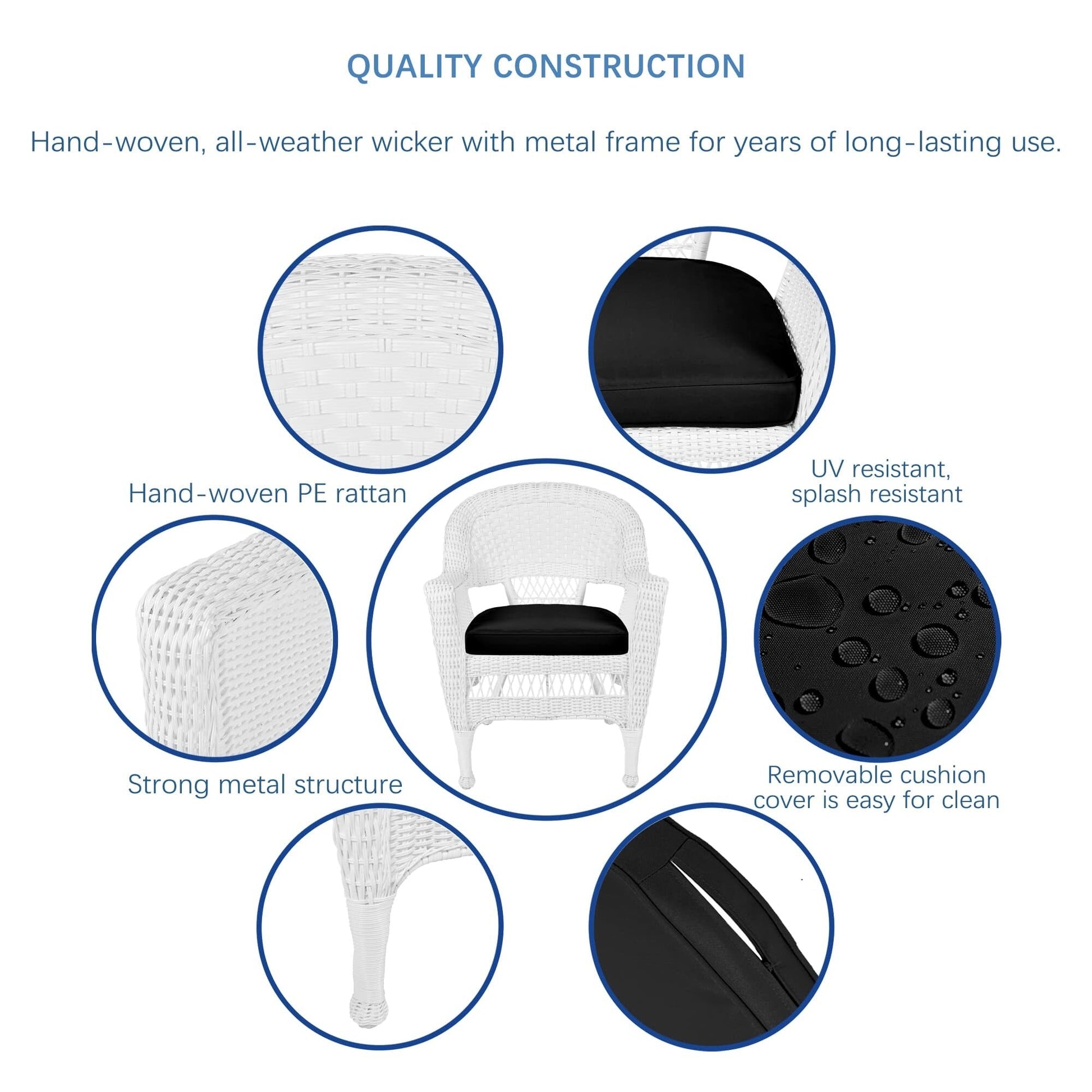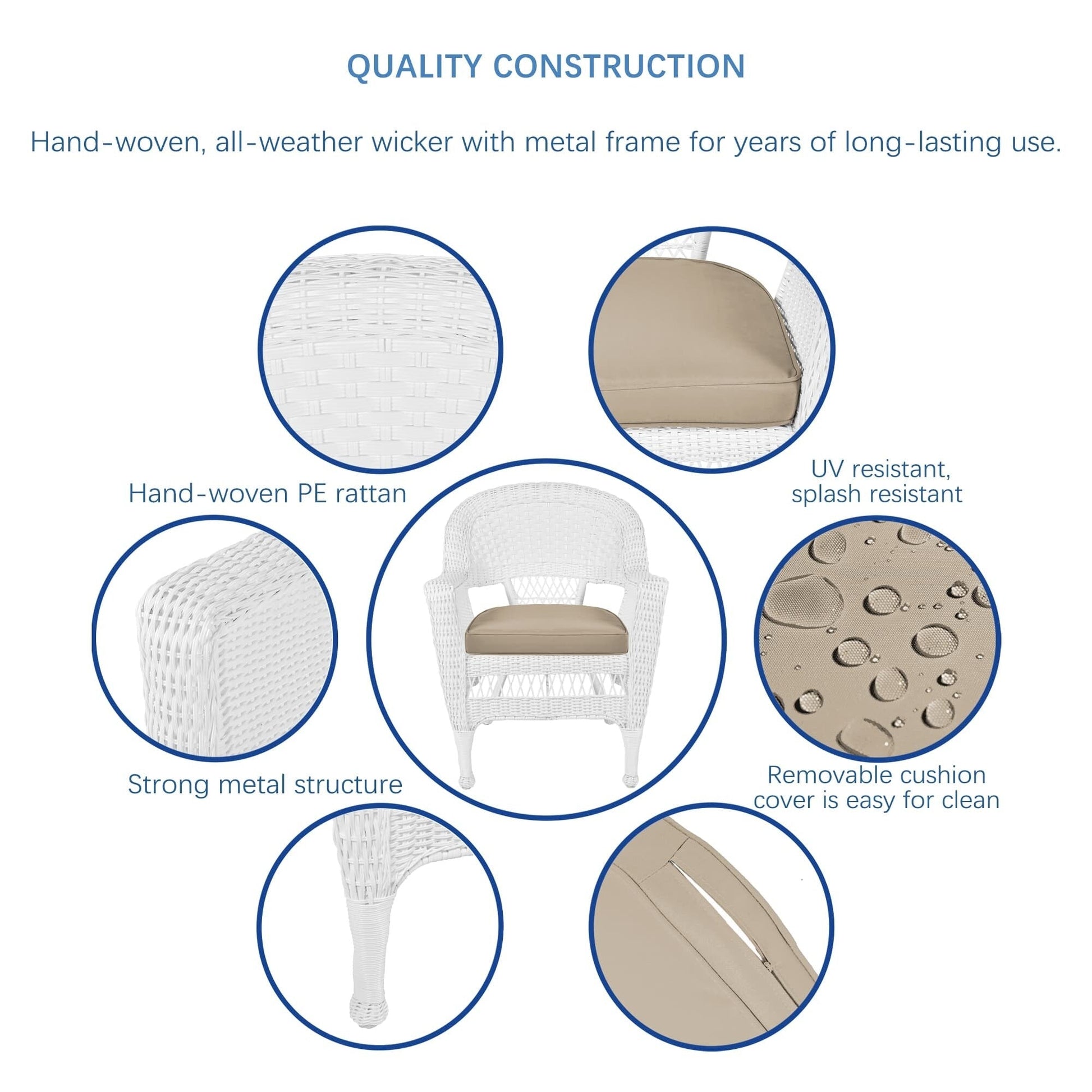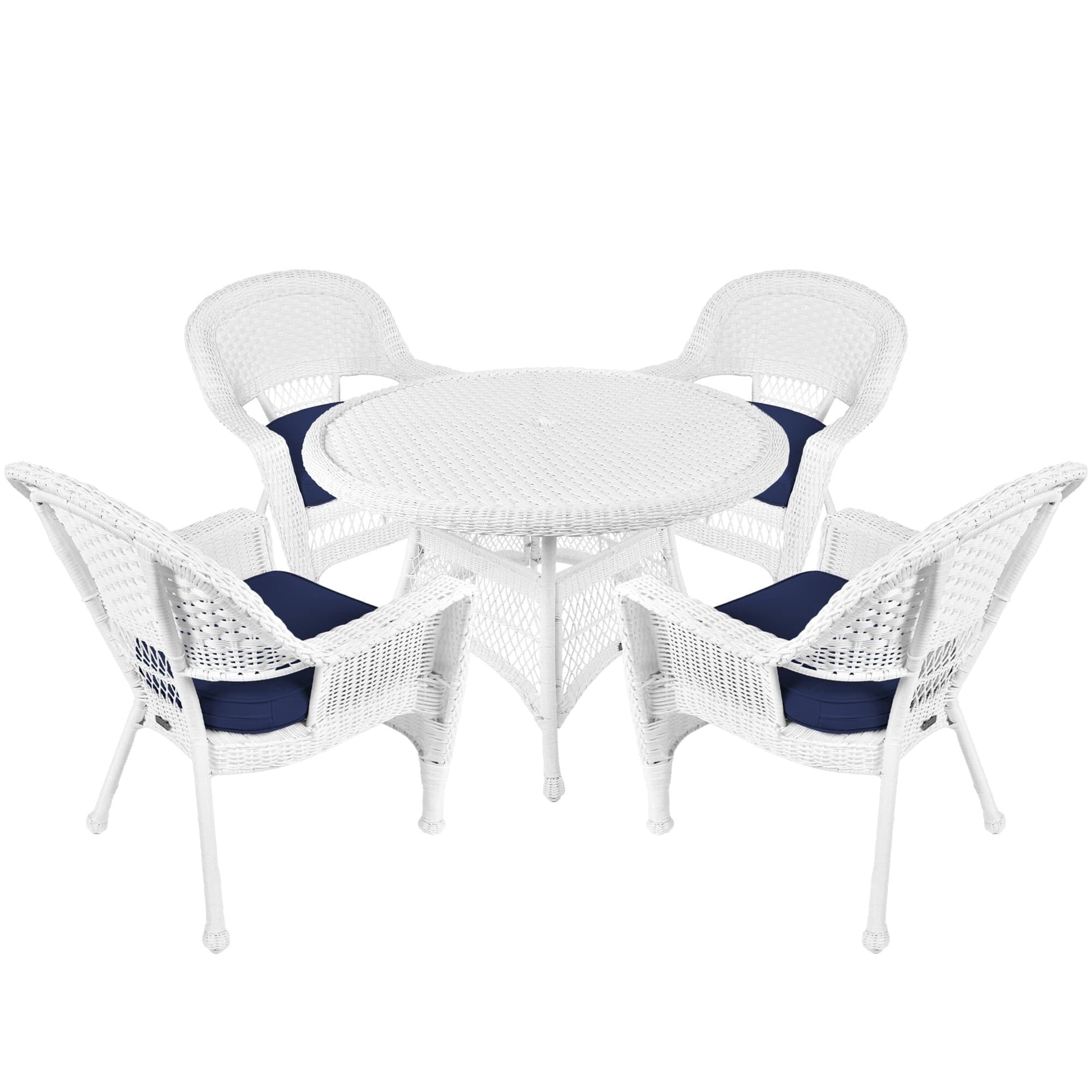 Rendi il tuo spazio esterno più confortevole con questo set da pranzo in vimini e resina bianca da 5 pezzi. Goditi il comfort della vita in casa con questo elegante set in vimini, composto da un tavolo rotondo in vimini e quattro sedie con morbidi cuscini disponibili in vari colori. Il set è costruito per durare grazie alla sua struttura in acciaio e al vimini in resina resistente alle intemperie.