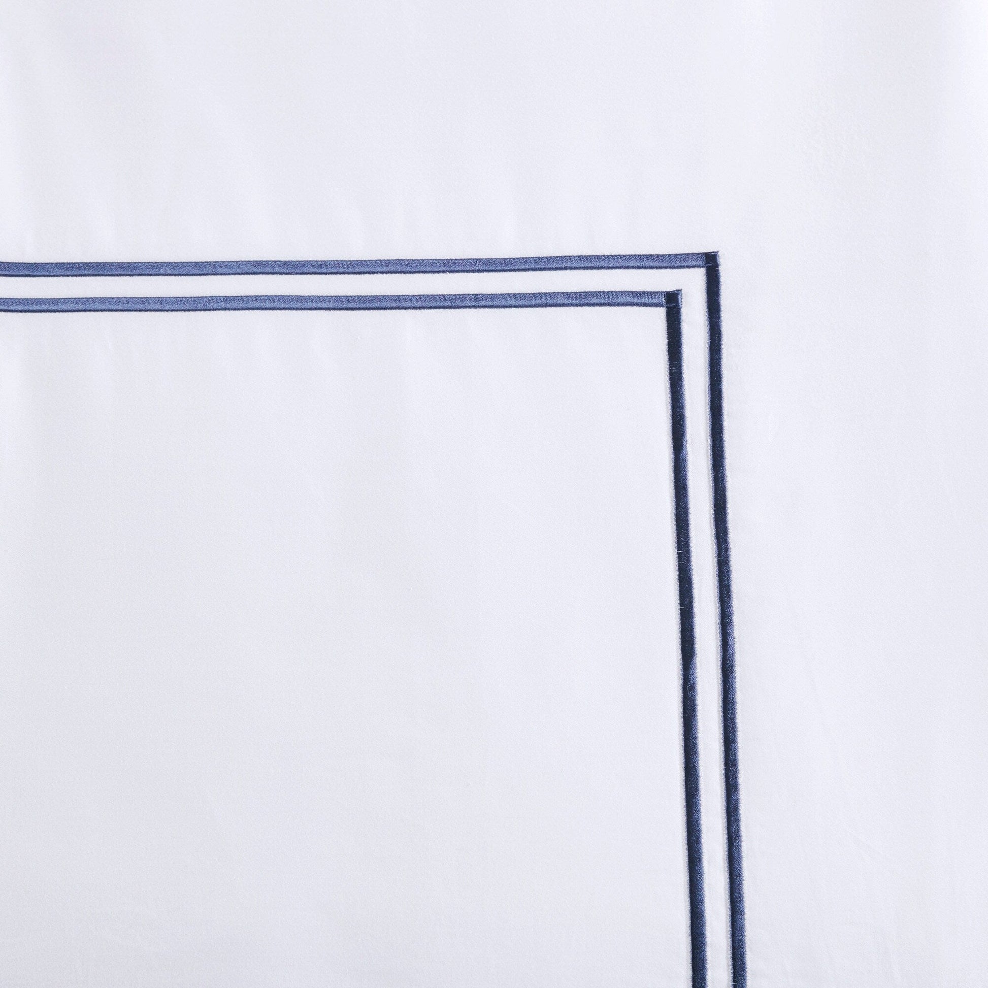 Piumino: raso di cotone 500TC, ricamo su fronte e retro, bordo a coltello