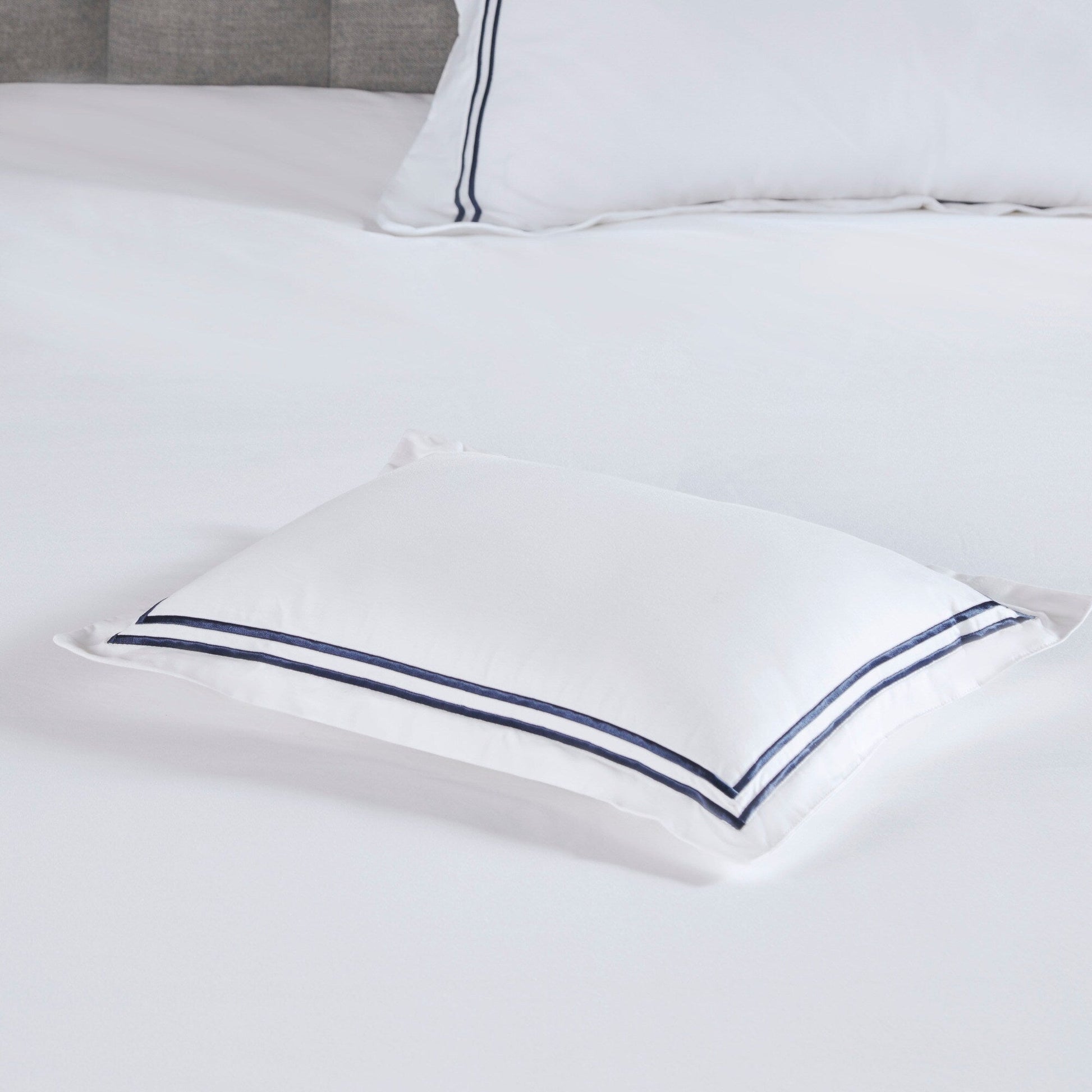 Rendi ogni notte un'esperienza di lusso in hotel con questo set copripiumino a 500 fili. Realizzato in morbido cotone, questo raffinato set da 4 pezzi presenta un bordo ricamato a righe a doppia fila per una finitura elegante. Il copripiumino è sfoderabile e presenta lacci angolari con chiusura a cerniera per una facile manutenzione. Questo set è inoltre certificato OEKO-TEX, il che significa che non contiene sostanze nocive o prodotti chimici per garantire comfort e benessere di qualità.