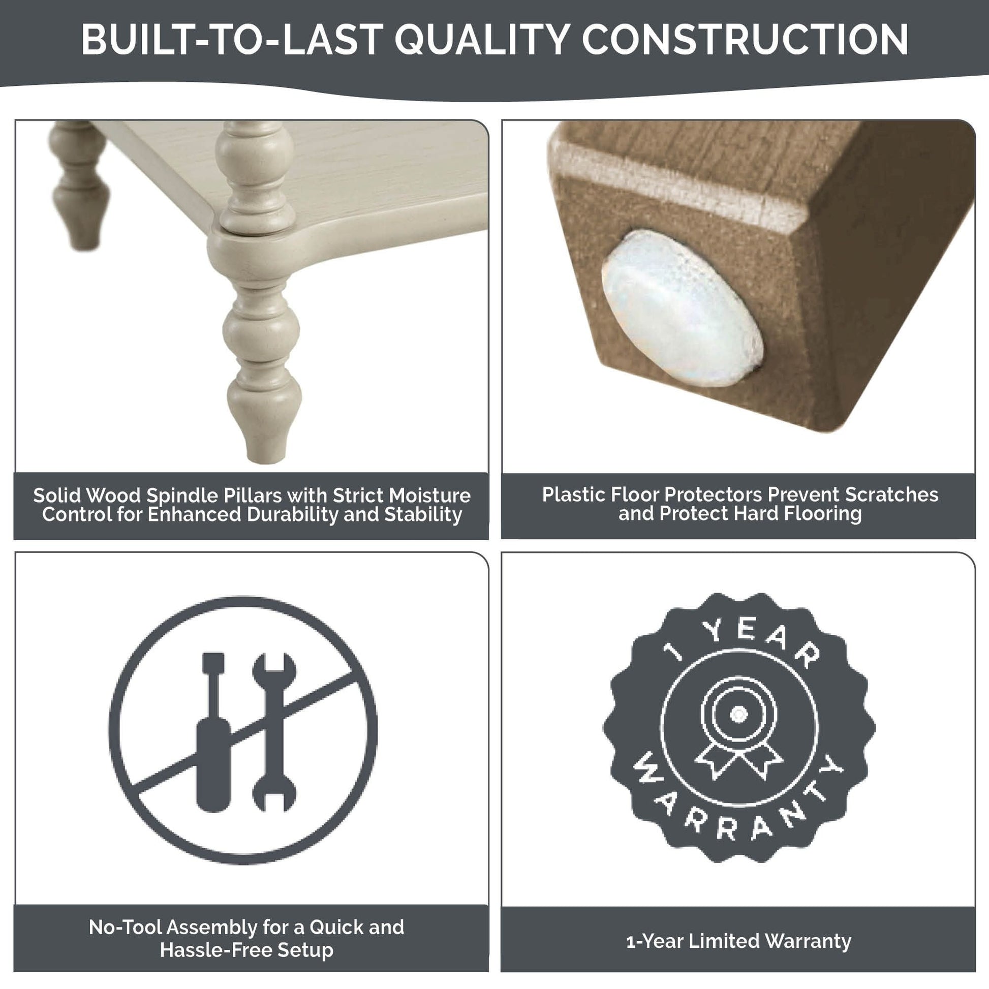 Il ripiano inferiore aperto offre spazio aggiuntivo per libri, decorazioni o cestini portaoggetti