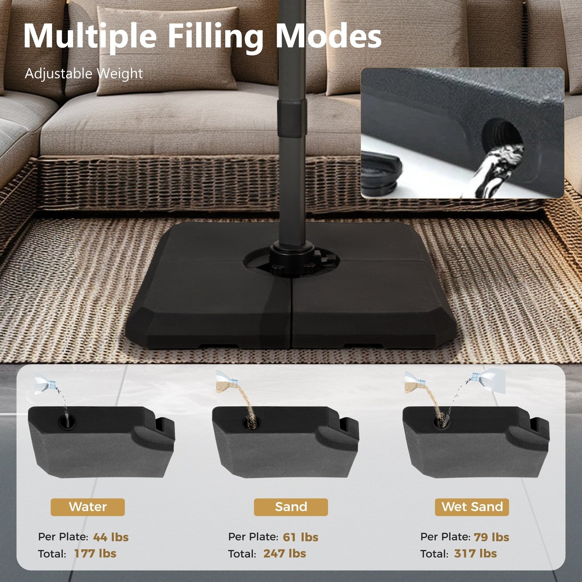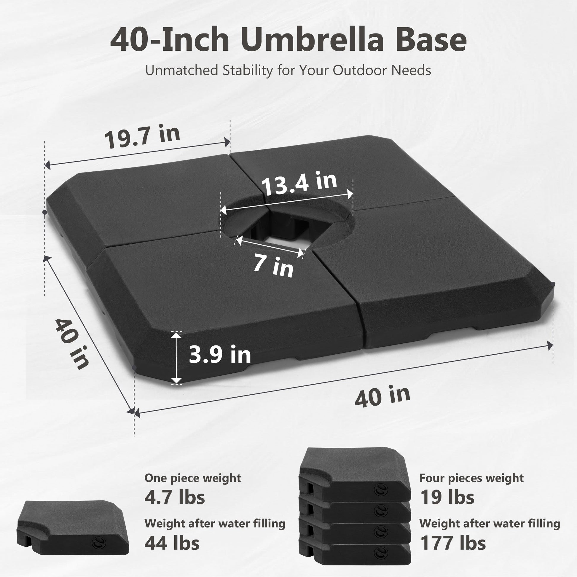 Nota: per il peso, consigliamo di utilizzare una base composta da 4 pezzi da almeno 30 kg ciascuno, per un totale di 120 kg. Per la vostra sicurezza e per evitare danni inutili, tenete l'ombrellone chiuso e fissato quando è esposto a vento forte o non viene utilizzato.