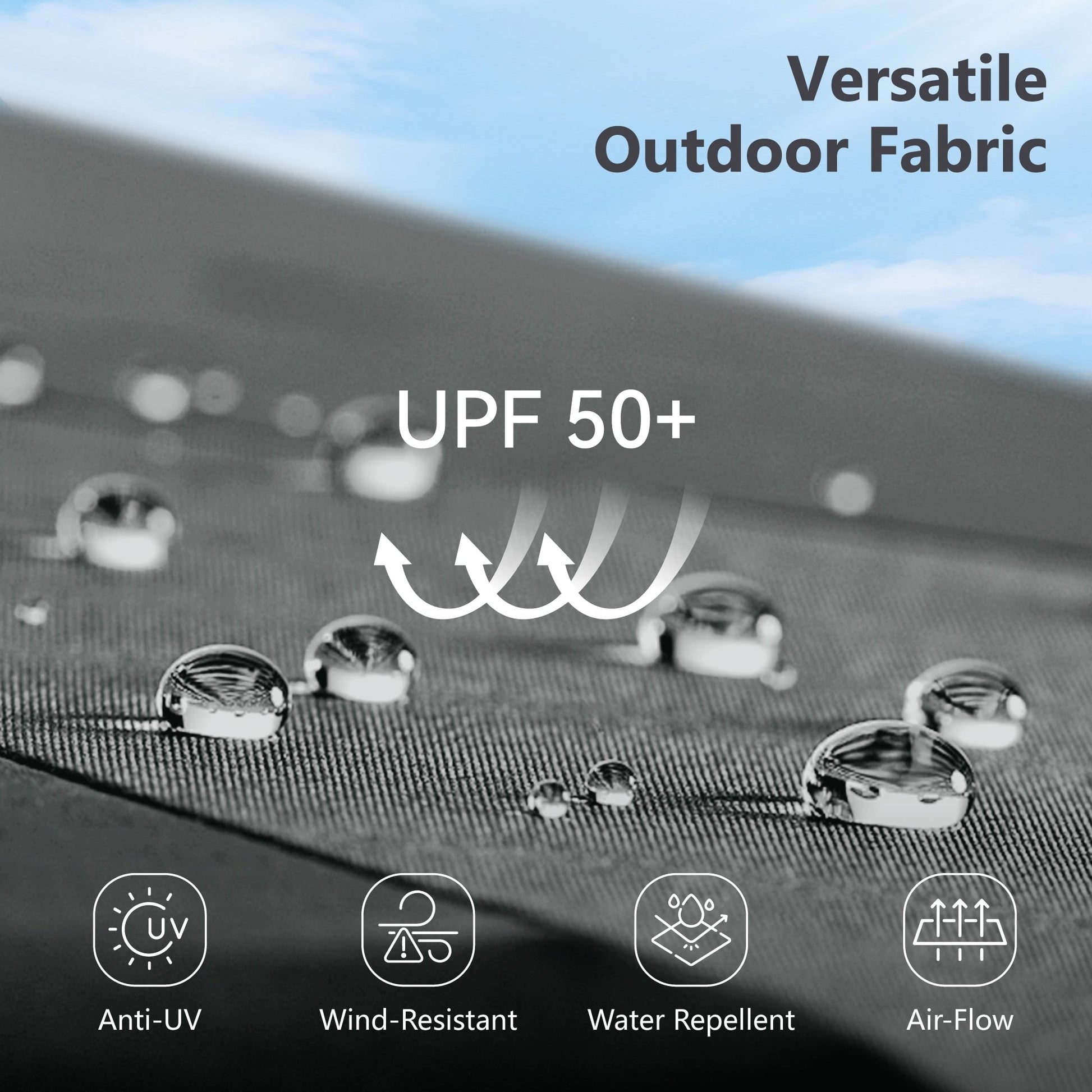2. Realizzato in tessuto tinto in massa da 250 g con rivestimento in PA per una maggiore durata, impermeabilità, protezione solare e resistenza allo sbiadimento. Il tessuto tinto in massa garantisce la stabilità del colore fino a 3 anni.