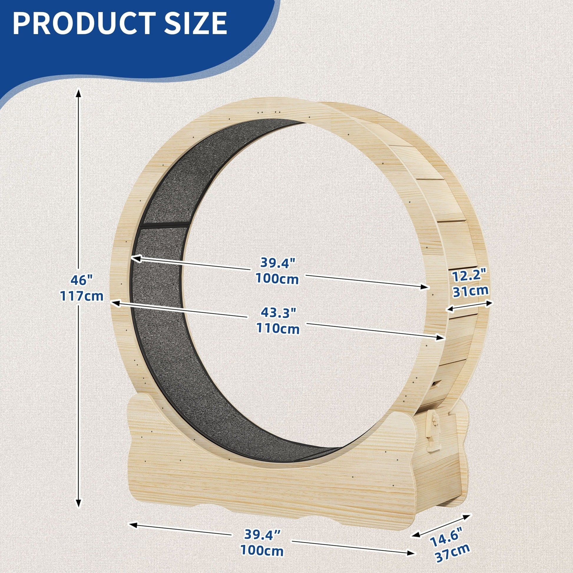 Moasis 43,3 pollici grande tapis roulant per gatti in legno con ruota da corsa e pista in moquette