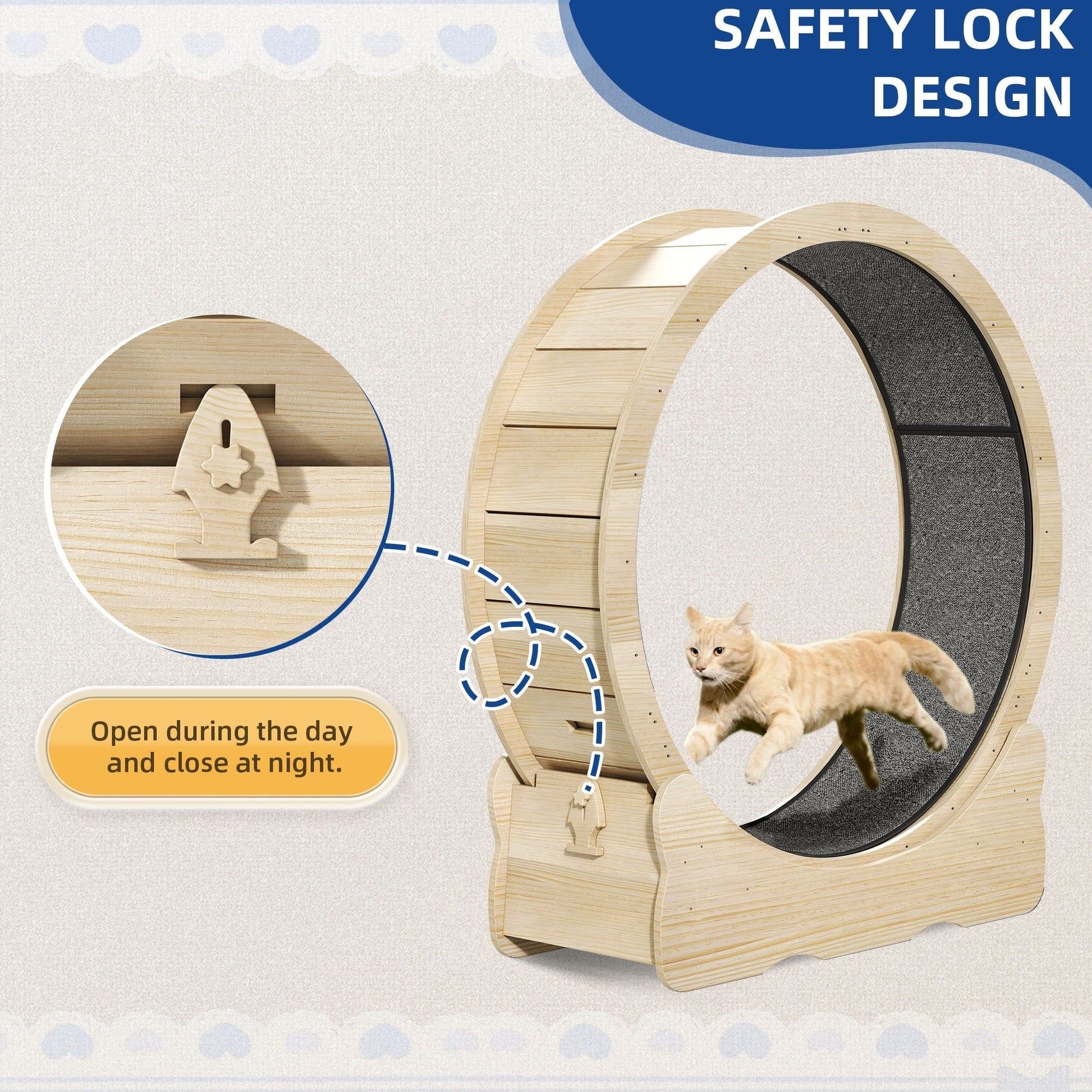 Il tapis roulant per gatti è progettato pensando alle preferenze dei gatti, stimolando la loro giocosità e promuovendo la loro salute generale. La sua struttura robusta e durevole può resistere all'uso quotidiano e al gioco, con una ruota da 35,8 pollici di diametro con interno in moquette antiscivolo. Questa robusta ruota per gatti offre ore di divertimento al tuo amico felino. Inoltre, il tapis roulant è dotato di un fermo di bloccaggio a spina di pesce che fissa la ruota quando non in uso, garantendo un esercizio silenzioso.