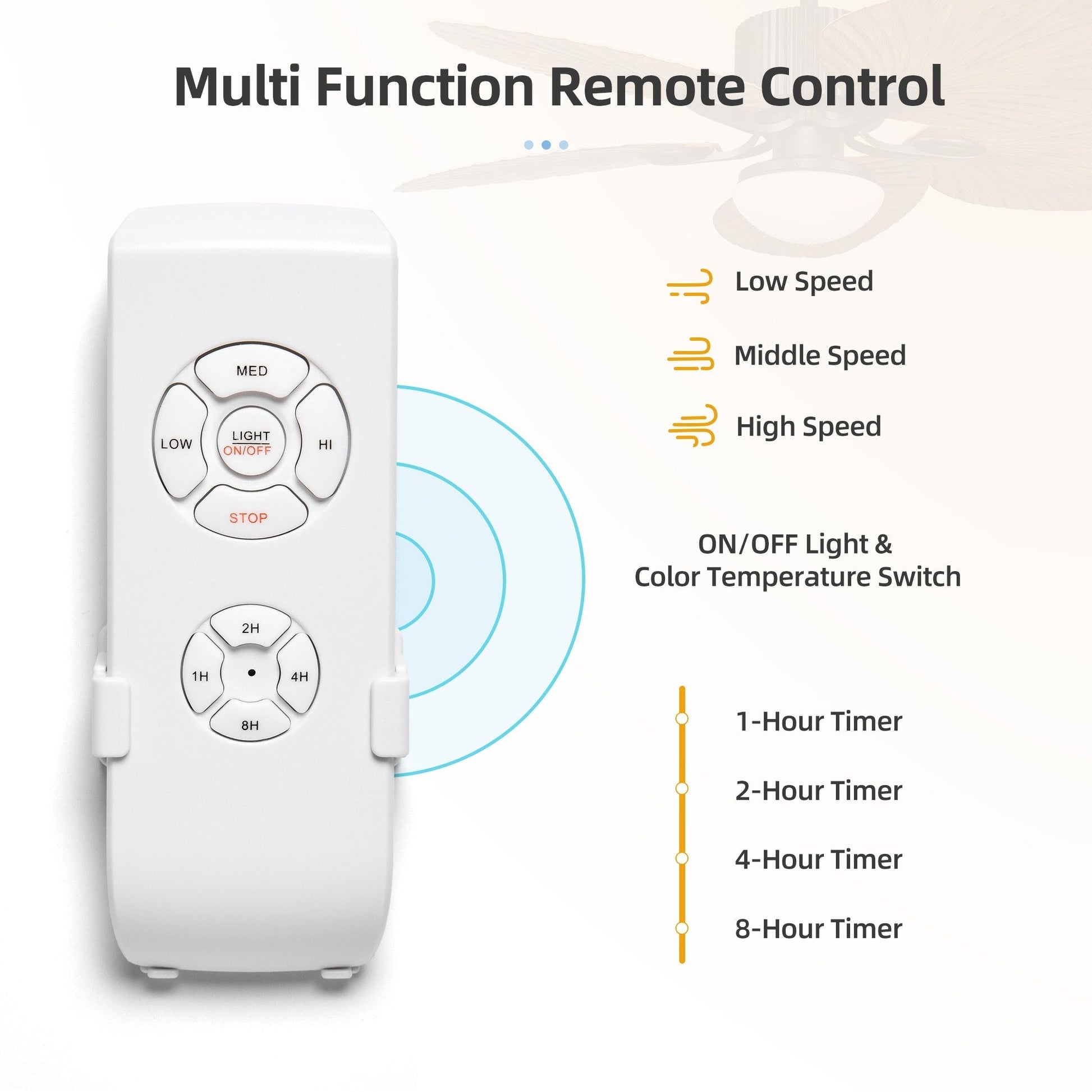 Ventilatore da soffitto Moasis 52 in foglia di palma con luce in stile tropicale con telecomando