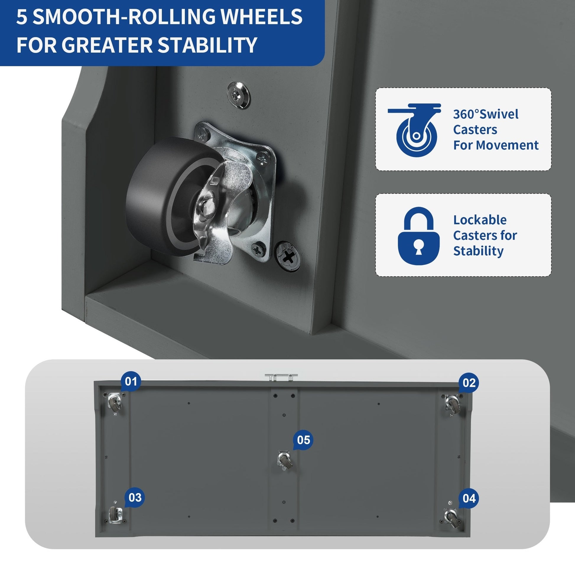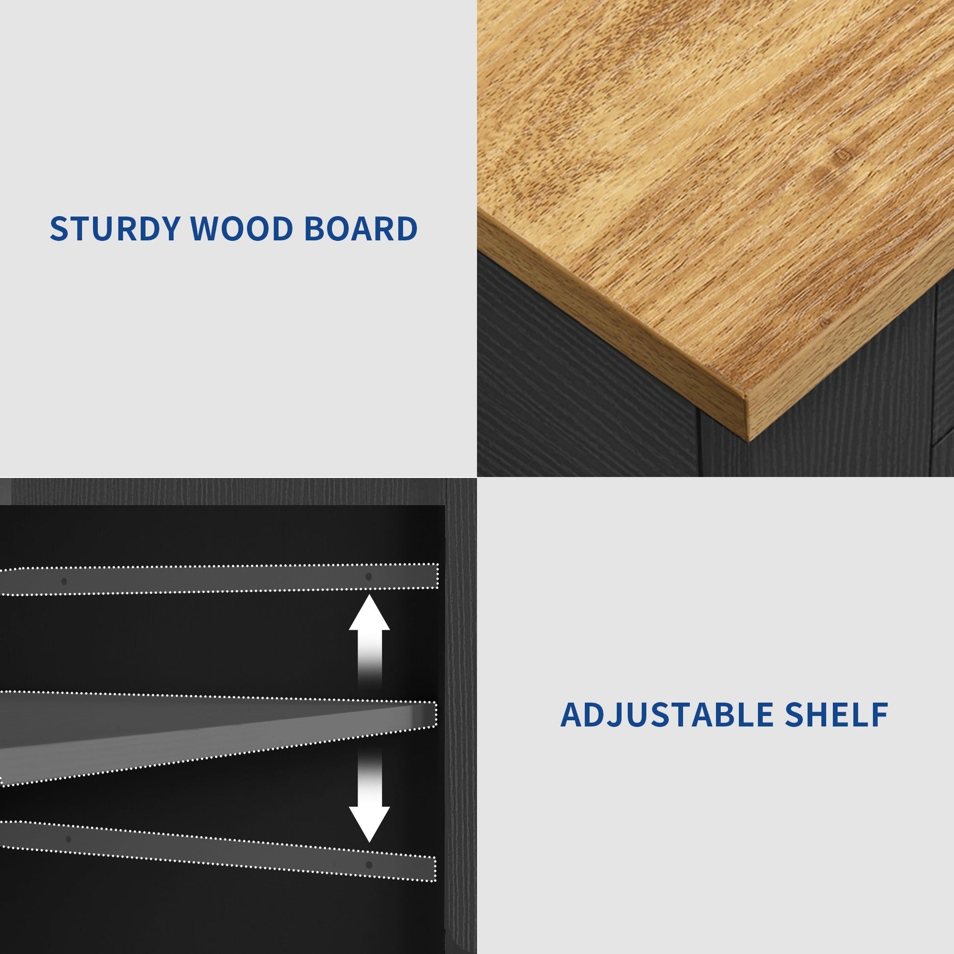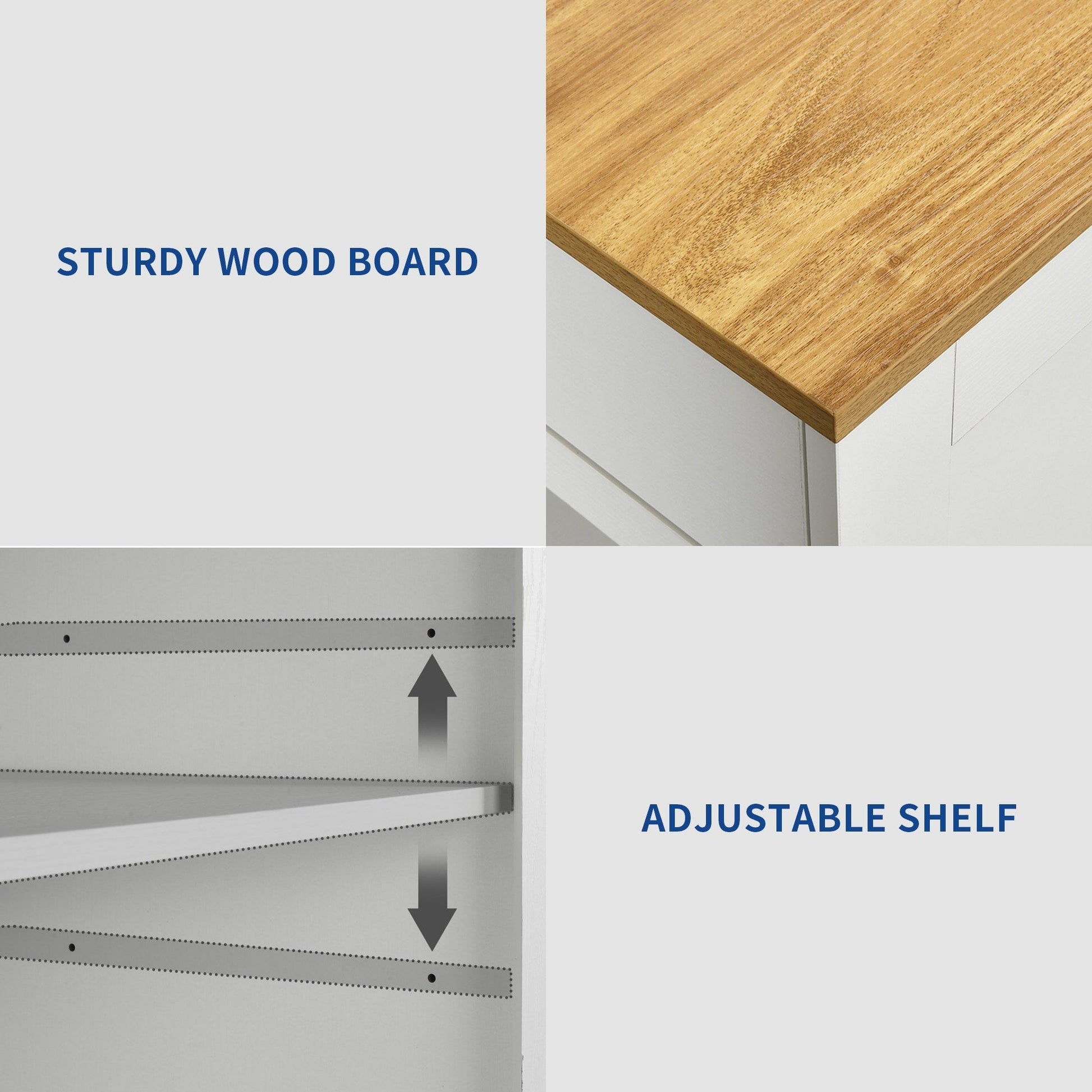 Scopri il nostro mobiletto portarifiuti ribaltabile! Questa aggiunta essenziale alla tua isola cucina aiuta a mantenere la cucina e la zona pranzo pulite e fresche, conservando in modo sicuro un bidone della spazzatura da 40 litri (non incluso) per prevenire i cattivi odori. Offre ampio spazio di archiviazione con 2 cassetti per utensili, stoviglie e cancelleria, e 3 ripiani laterali aperti per le spezie. Il ripiano regolabile all'interno del mobiletto può contenere vari utensili da cucina. Questo versatile carrello è dotato di ruote bloccabili per un facile spostamento e bloccaggio durante la preparazione o la conservazione degli alimenti. Ideale per cucine, sale da pranzo e ristoranti, questo mobiletto è realizzato in pannelli MDF certificati CARB fase Ⅱ. Il montaggio è semplice e le istruzioni sono chiare.