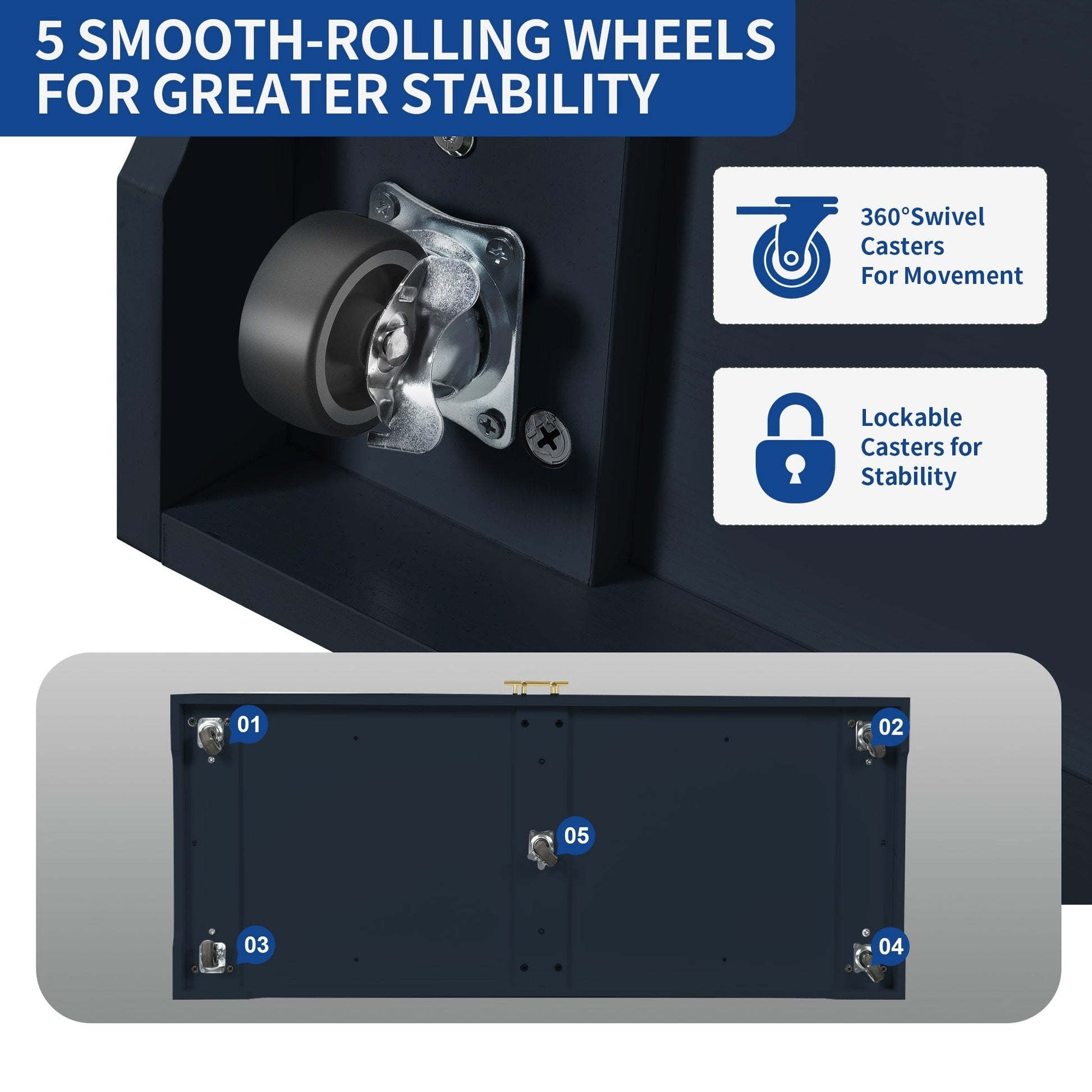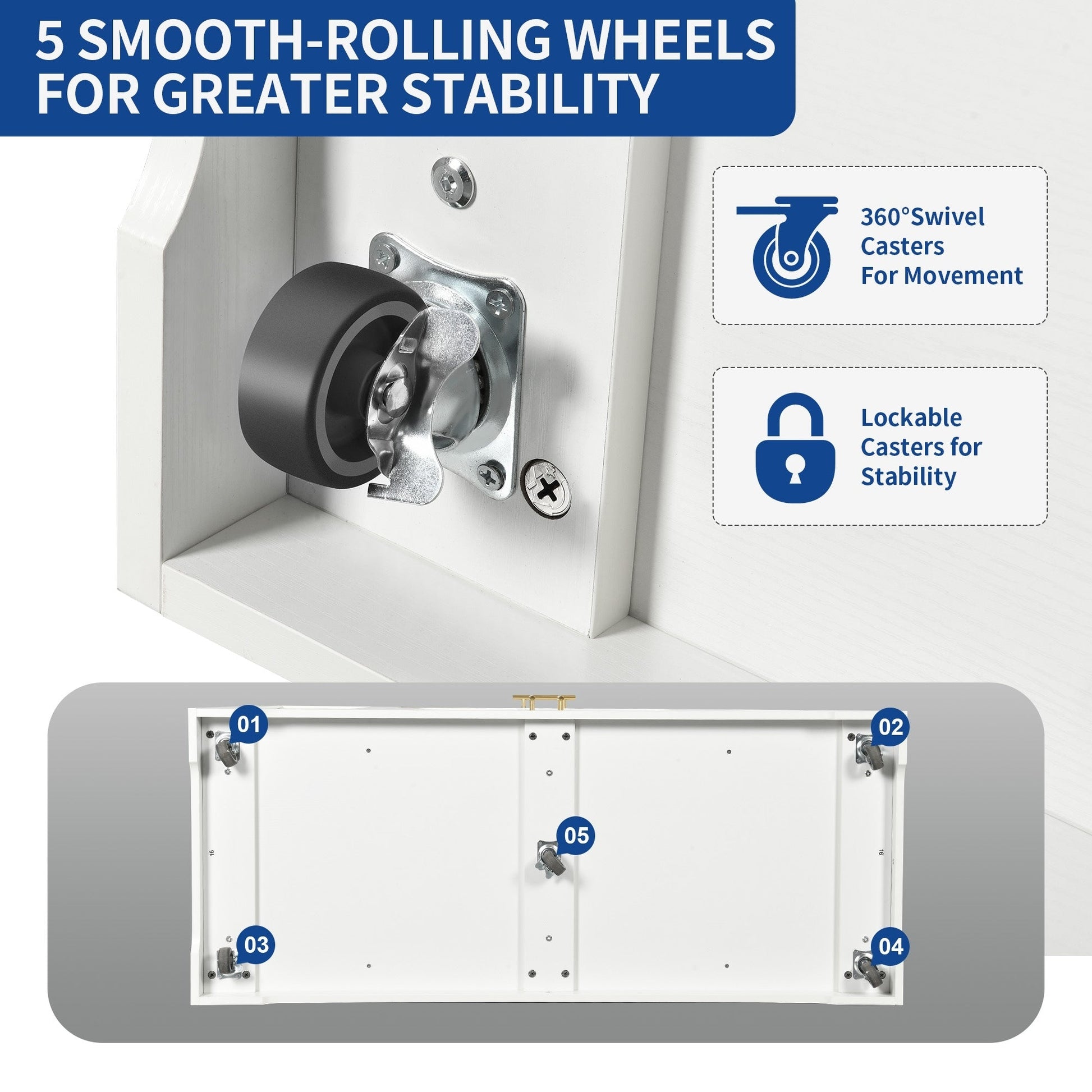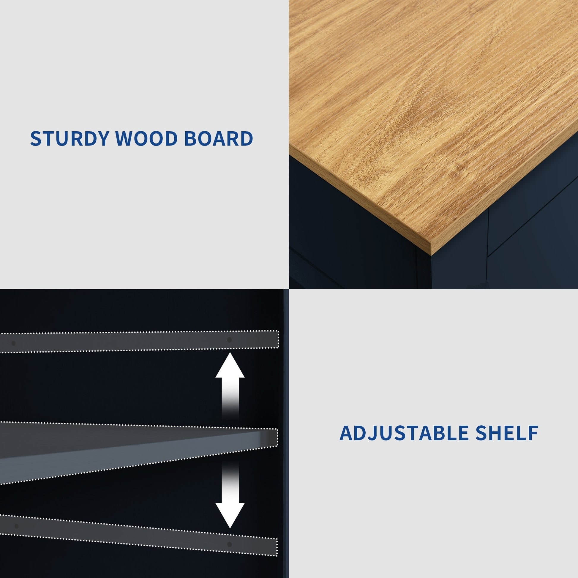 Scopri il nostro mobiletto portarifiuti ribaltabile! Questa aggiunta essenziale alla tua isola cucina aiuta a mantenere la cucina e la zona pranzo pulite e fresche, conservando in modo sicuro un bidone della spazzatura da 40 litri (non incluso) per prevenire i cattivi odori. Offre ampio spazio di archiviazione con 2 cassetti per utensili, stoviglie e cancelleria, e 3 ripiani laterali aperti per le spezie. Il ripiano regolabile all'interno del mobiletto può contenere vari utensili da cucina. Questo versatile carrello è dotato di ruote bloccabili per un facile spostamento e bloccaggio durante la preparazione o la conservazione degli alimenti. Ideale per cucine, sale da pranzo e ristoranti, questo mobiletto è realizzato in pannelli MDF certificati CARB fase Ⅱ. Il montaggio è semplice e le istruzioni sono chiare.