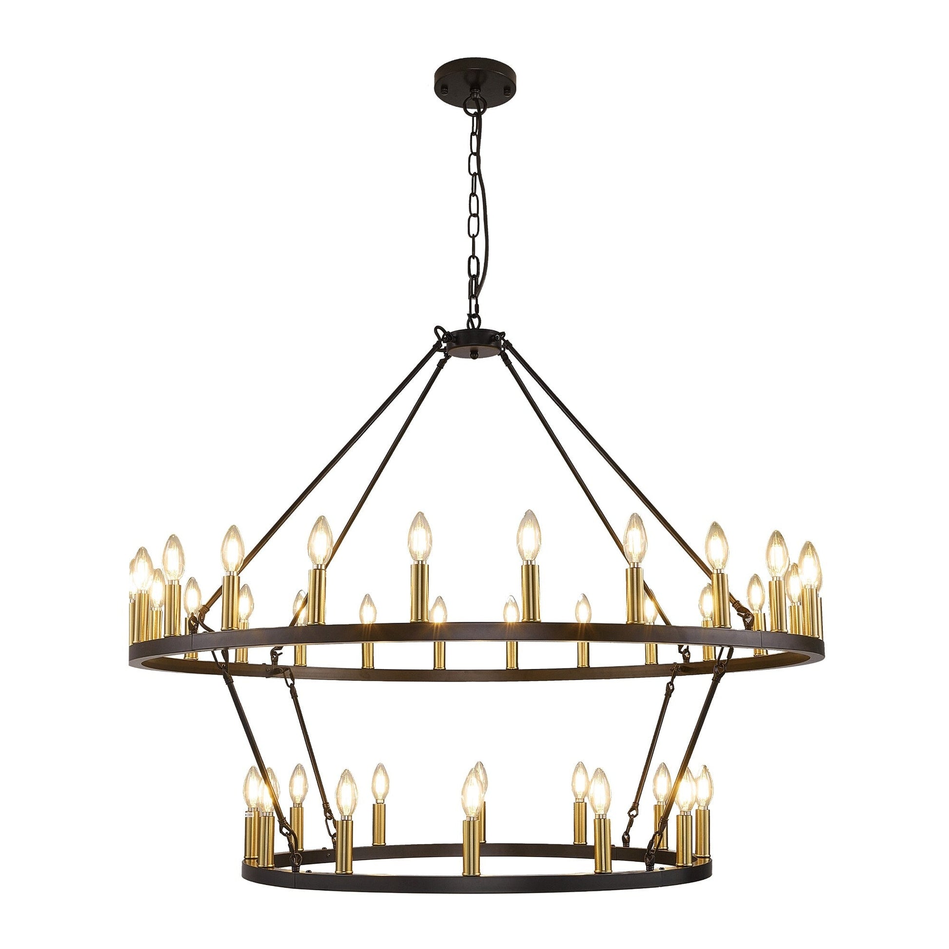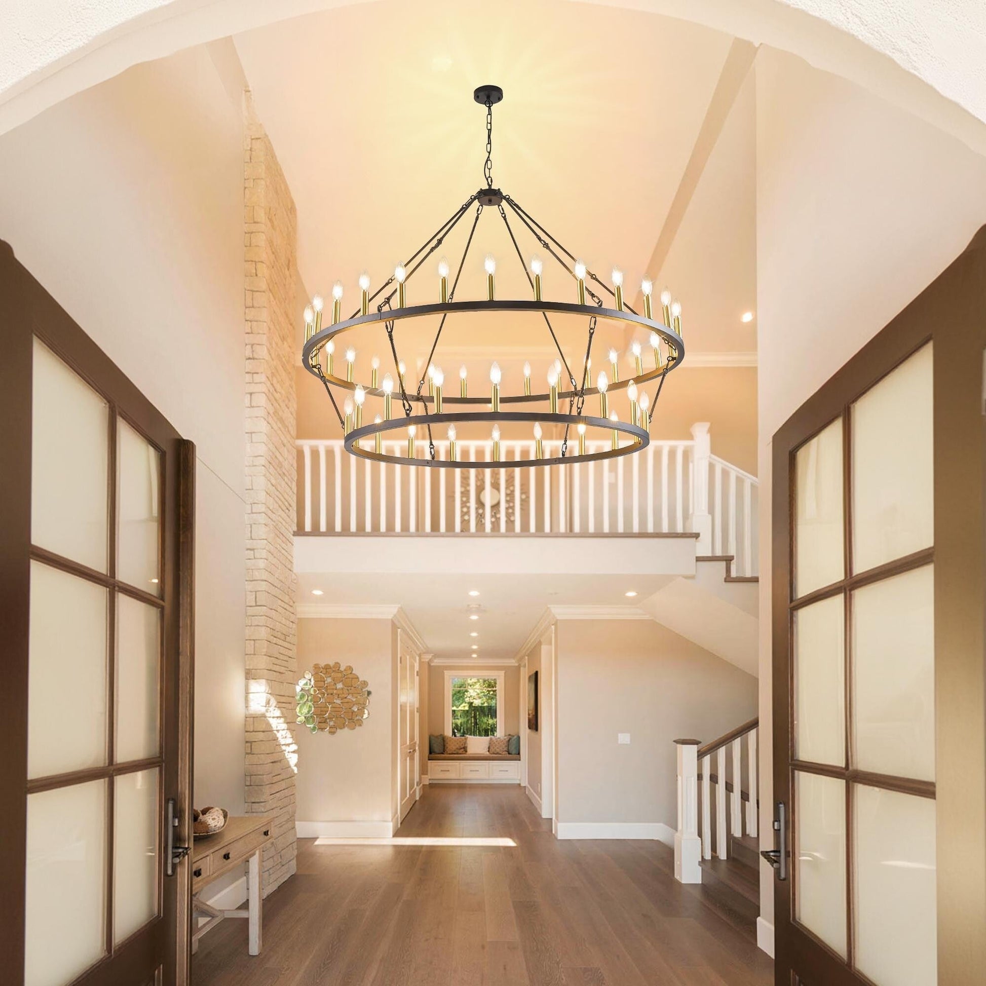 Aggiungi un tocco di stile rustico moderno alla tua casa con questo lampadario moderno a 2 livelli a forma di ruota di carro, grande lampadario alto da soffitto. Questo lampadario classico è realizzato in ferro di alta qualità, sabbiato a polvere per una finitura opaca, ed è resistente. I 2 livelli, con un totale di 36 luci, offrono una copertura luminosa a 360°, creando un'atmosfera accogliente. Questo grande lampadario è perfetto per illuminare completamente un ampio spazio come il soggiorno, la sala da pranzo e un ampio ingresso/atrio a due piani.
