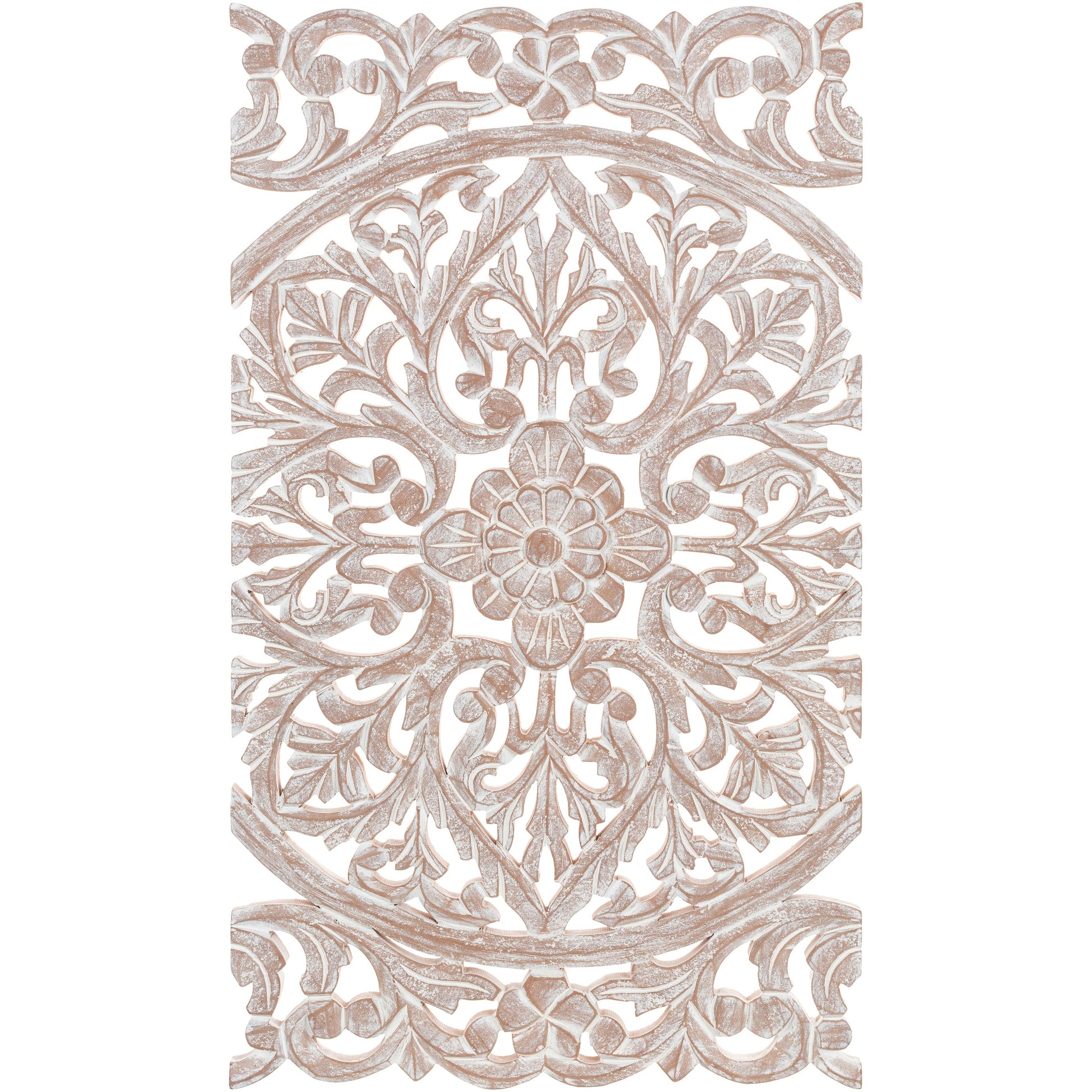 L'aspetto raffinato dei pannelli da parete Norma conferisce un tocco di originalità a qualsiasi ambiente. Questa decorazione da parete in legno riccamente intagliato è composta da 3 grandi pannelli. Ogni pannello è intagliato a mano da un artigiano, conferendogli un aspetto antico. L'intricato motivo è composto da festoni e acanto in una finitura anticata. Reinterpreta l'originale e iconica scultura in legno indiana con un motivo sobrio ma di grande impatto. Con una dimensione totale di 122 x 76 cm, è un'aggiunta di grande effetto a qualsiasi ambiente. Per conferirgli un fascino moderno, questi pannelli sono rifiniti a mano da un artigiano con raffinate finiture anticate. Disponibili in finitura naturale. I singoli pannelli sono larghi 40 cm. Pulire con un panno asciutto.