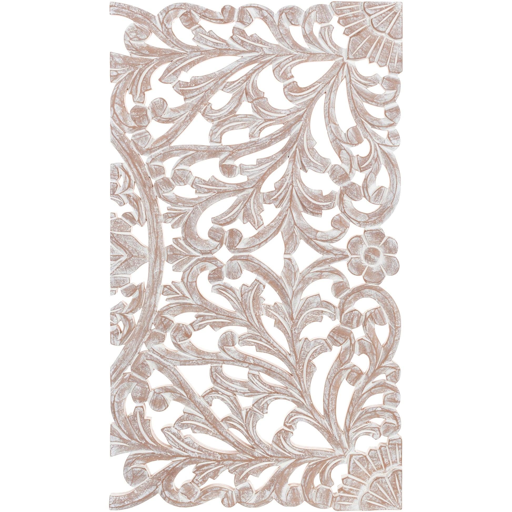 Norma Floral, arte murale in legno naturale intagliato a mano, 48x28 pollici, 3 pannelli