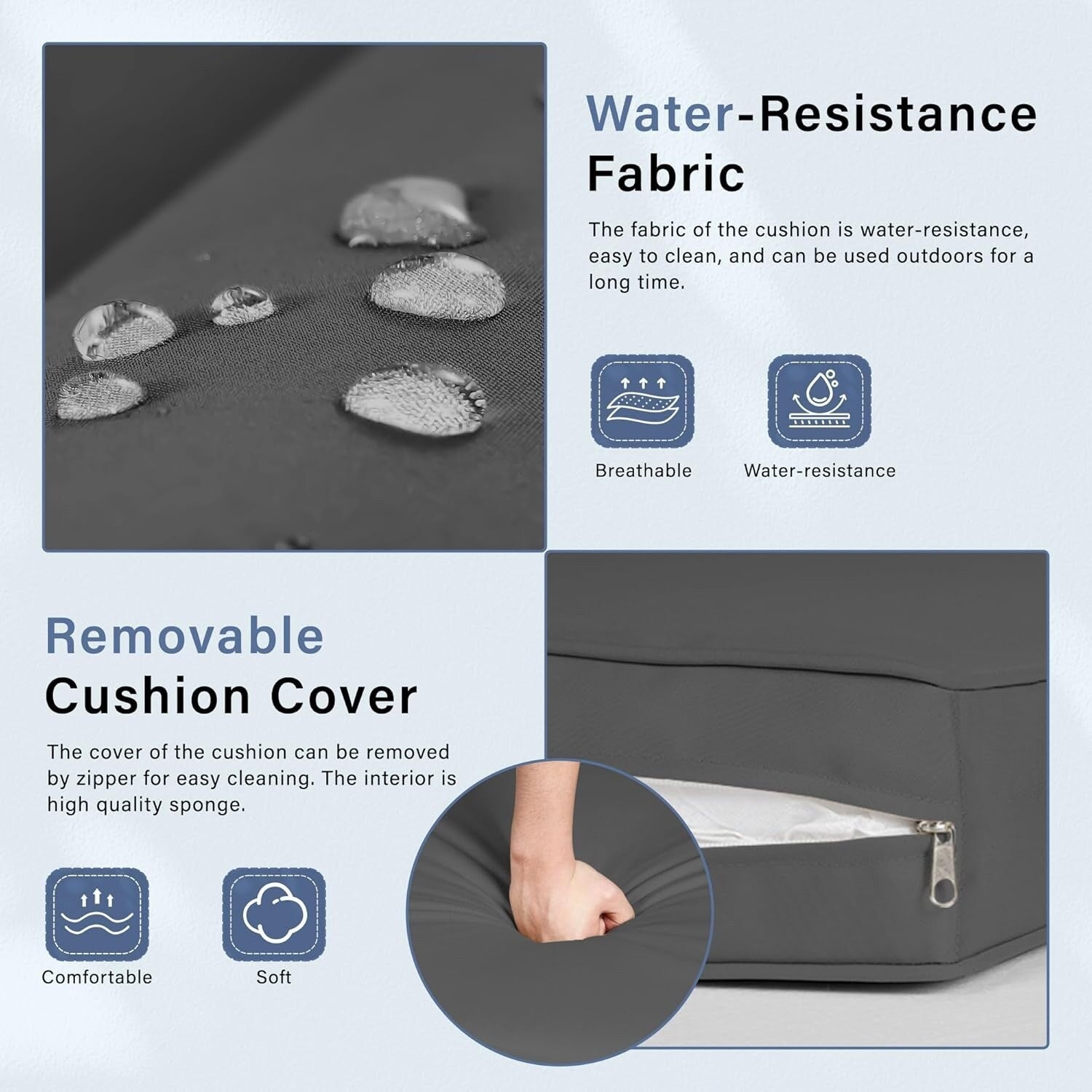 Le fodere dei cuscini rimovibili in poliestere sono resistenti alle intemperie e dotate di imbottitura in spugna.
