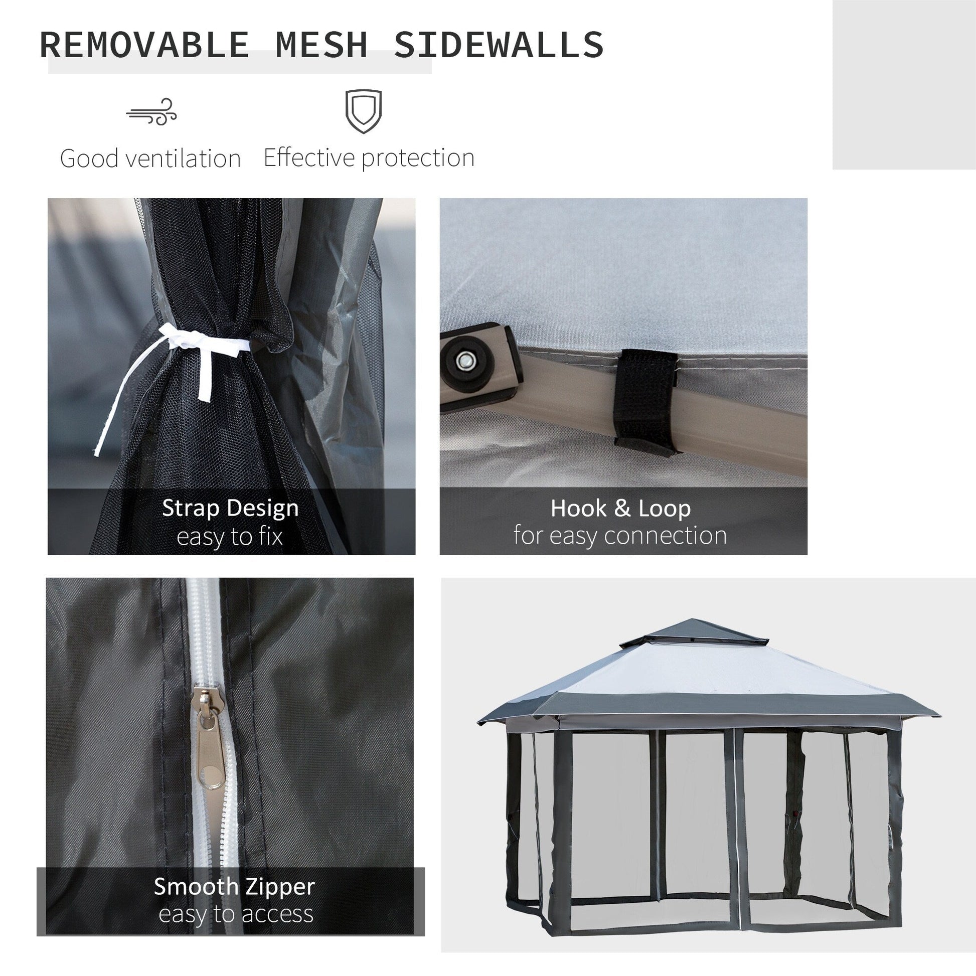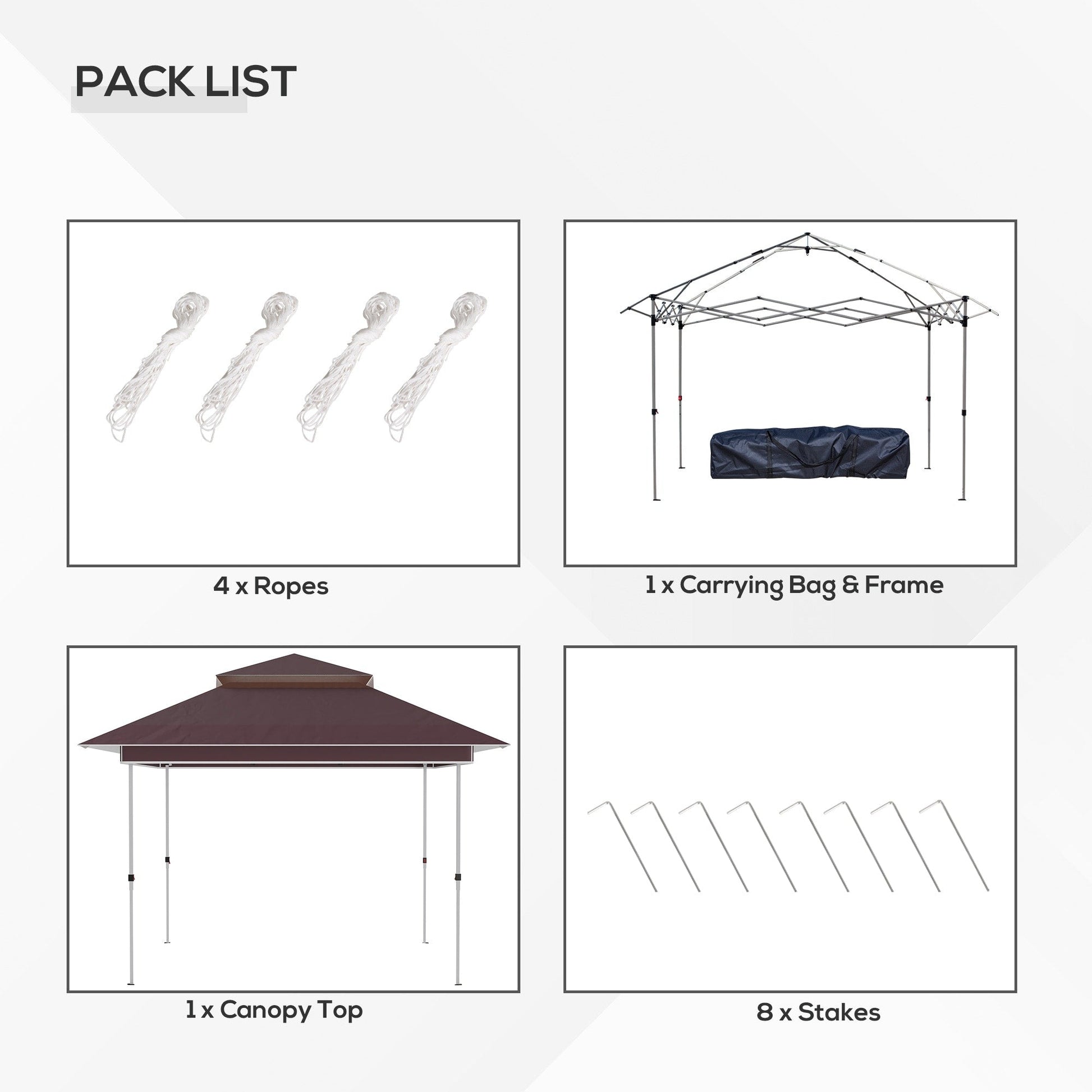 Con Outsunny, puoi aprire, chiudere e chiudere a scomparsa. Questa tenda istantanea si monta rapidamente e offre un'ampia protezione dal sole. Utilizza le pareti laterali in rete traspirante per creare una comoda seduta. Anche la parte superiore ventilata della nostra tenda pieghevole per feste è dotata di rete, che, insieme alle corde e ai picchetti di supporto, fornisce una struttura più stabile, aiutandola a resistere al vento. Una volta terminato, abbassa la tenda e porta con te la borsa per il trasporto inclusa.