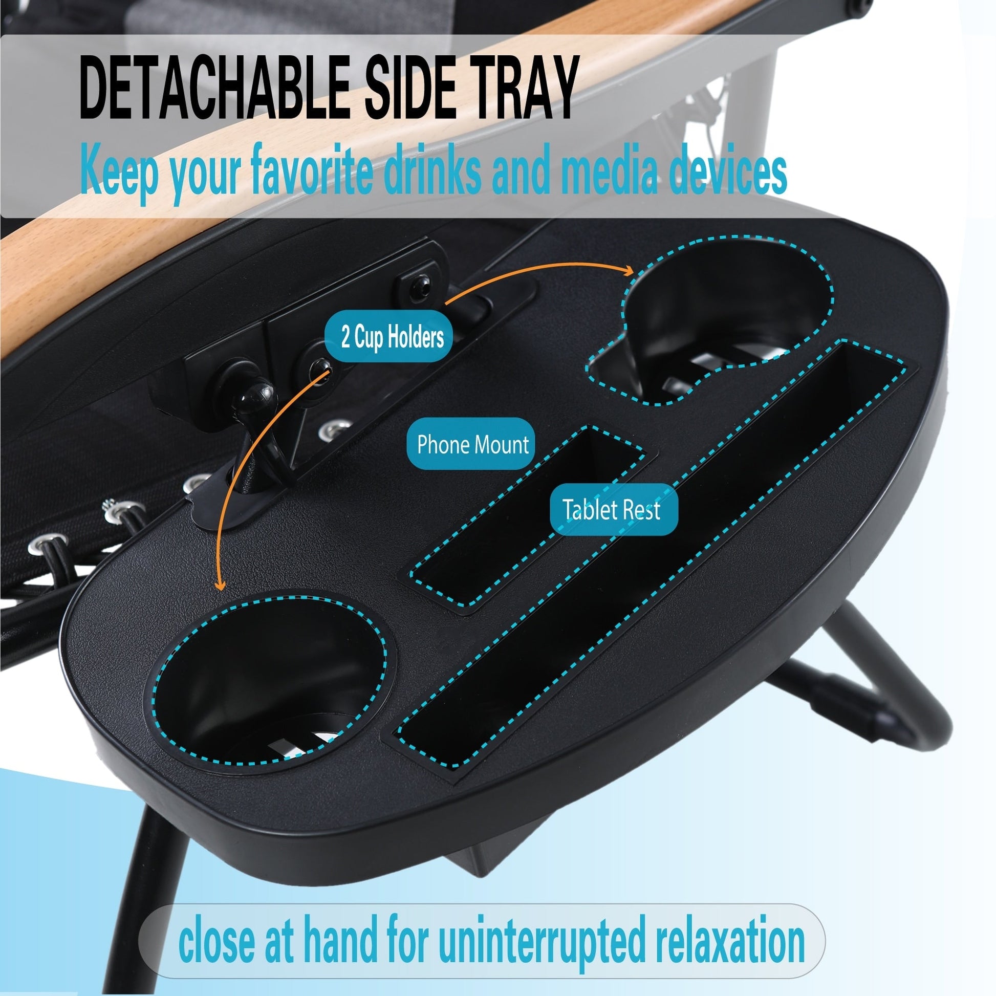Questa poltrona reclinabile è progettata con uno schienale più ampio e un cuscino per offrirti un'esperienza di riposo più confortevole quando ti sdrai. Inoltre, la poltrona reclinabile non necessita di montaggio, può essere piegata, non occupa spazio ed è comoda da trasportare, riducendo i disagi dei viaggi all'aperto! Puoi anche regolare l'angolo di reclinazione della poltrona reclinabile in base alle tue effettive esigenze. È dotata di un supporto separato per bevande per soddisfare appieno le tue esigenze di riposo all'aperto. (Tavolo non incluso)