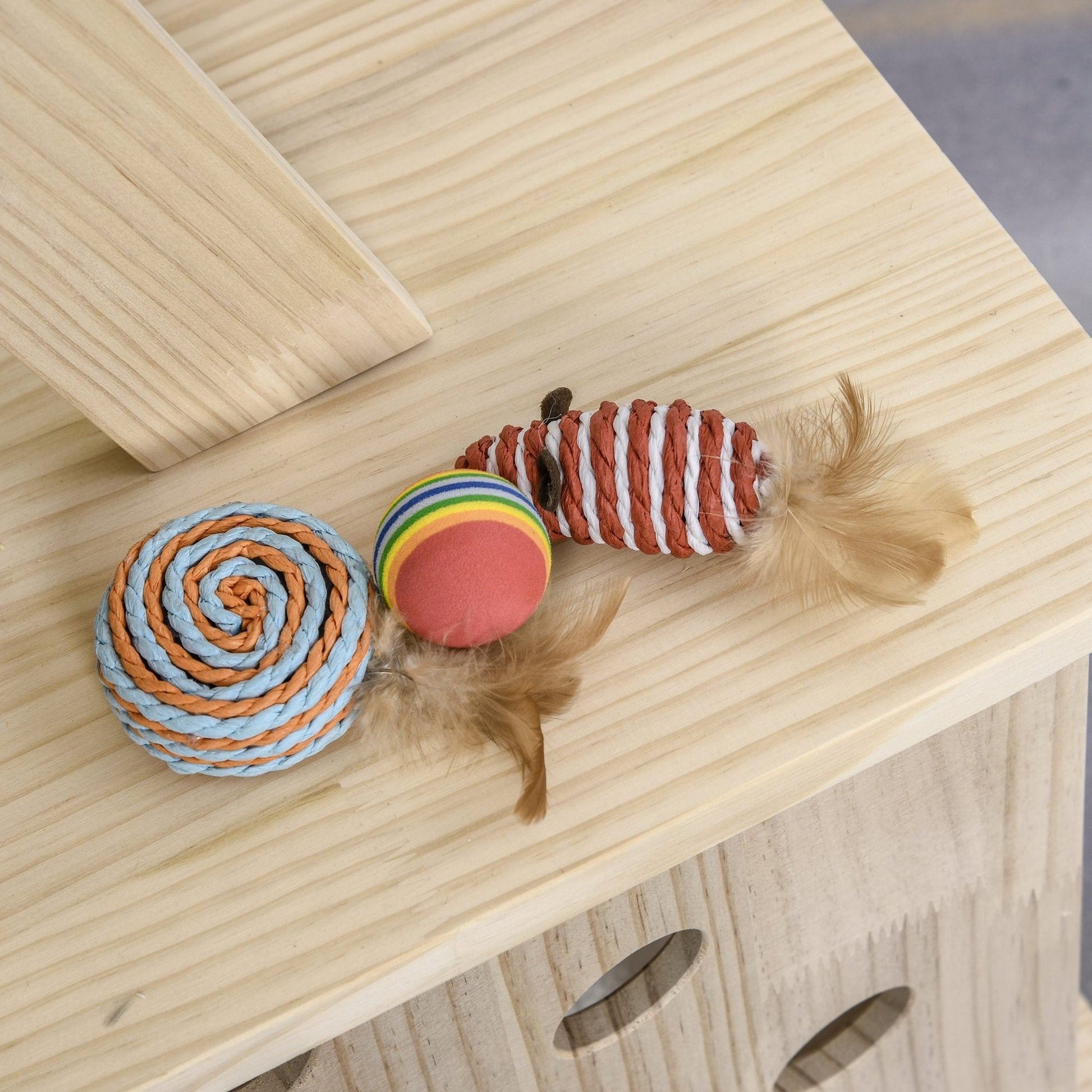 Intrattenete i vostri gatti senza fine con il tiragraffi PawHut! Questa speciale area gioco per animali domestici di questa cuccia per gatti offre tantissime attività divertenti e interessanti per i vostri piccoli preferiti. Con 5 piattaforme su cui dormire e crogiolarsi, questa torre multifunzionale per gatti è la soluzione perfetta per le case con più di un felino vivace! I tiragraffi di questa torre per attività per gatti sono utili sia per l'animale che per i proprietari, offrendo un posto dove alleviare il desiderio del vostro gatto di graffiare e arrampicarsi, salvaguardando tappeti e mobili da eventuali danni. Riposo, gioco, esercizio: i vostri gatti possono trascorrere tutto il giorno su questa struttura confortevole per i vostri amici pelosi.