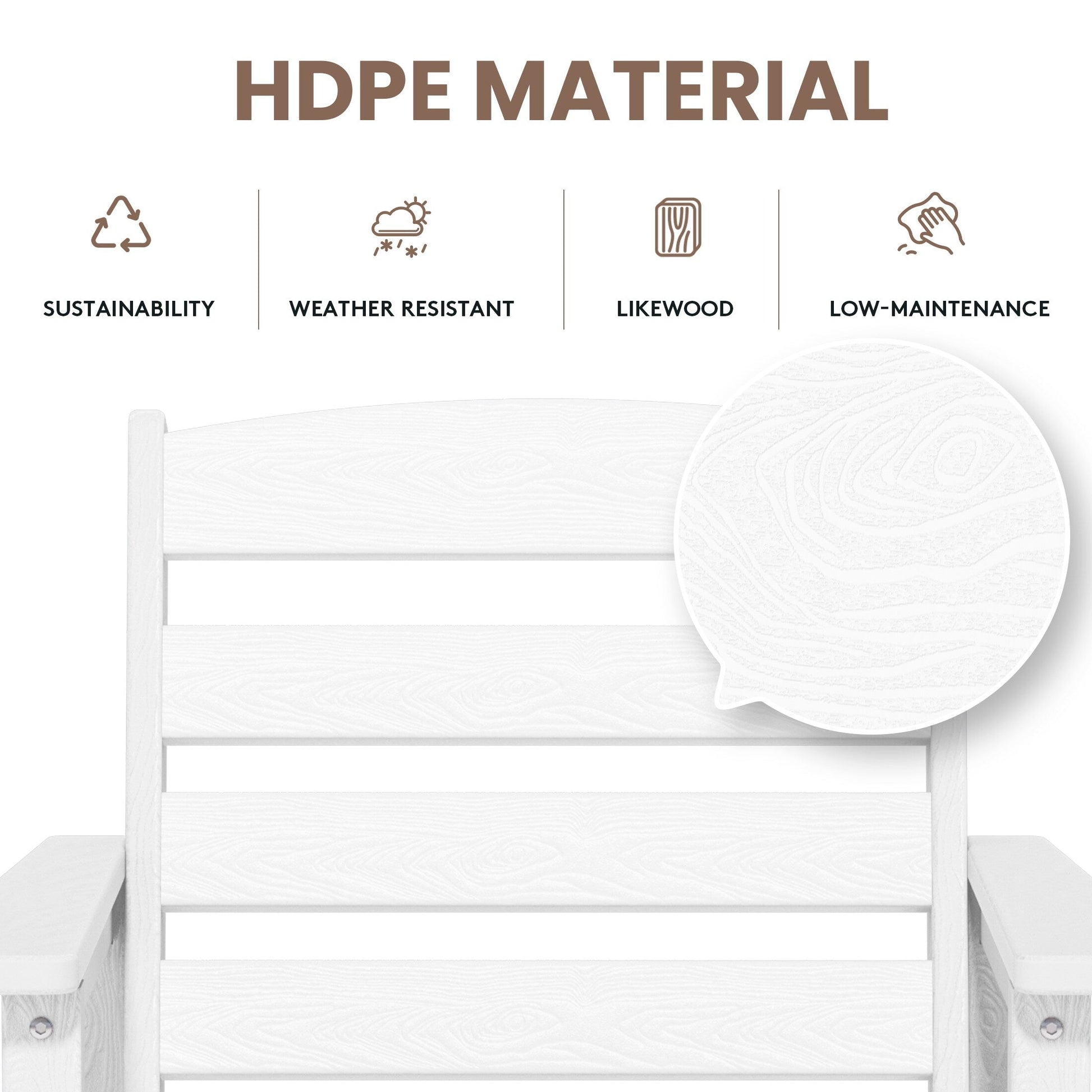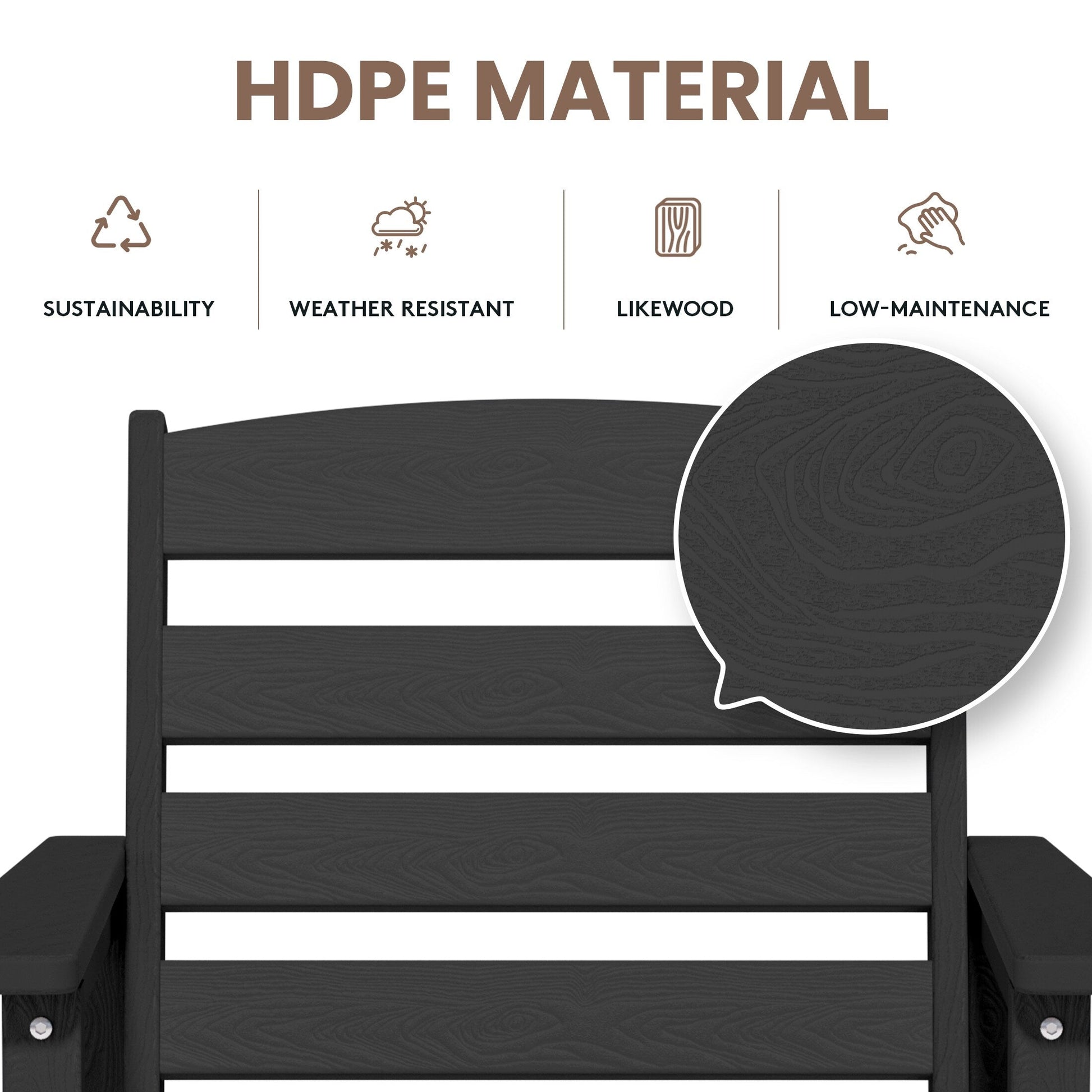 Il set comprende un tavolo e due sedie in stile Adirondack. Le sedie Adirondack sono note per la seduta e lo schienale inclinati, gli ampi braccioli e il design rilassato e informale. Questo set è progettato per creare una comoda area salotto nel vostro patio o in giardino. È pensato per conversare, rilassarsi e godersi le attività all'aria aperta.