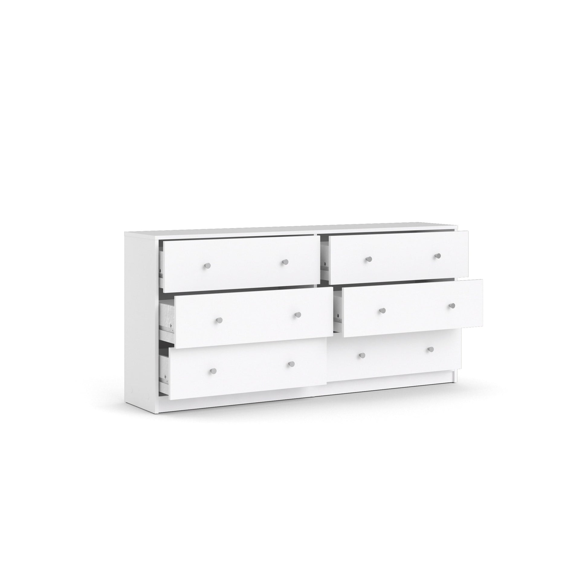 Espandi lo spazio a tua disposizione con questa cassettiera. La struttura in legno laminato rivestito in lamina presenta sei ampi cassetti con guide in plastica. Scegli tra quattro versatili finiture per completare il tuo arredamento contemporaneo.