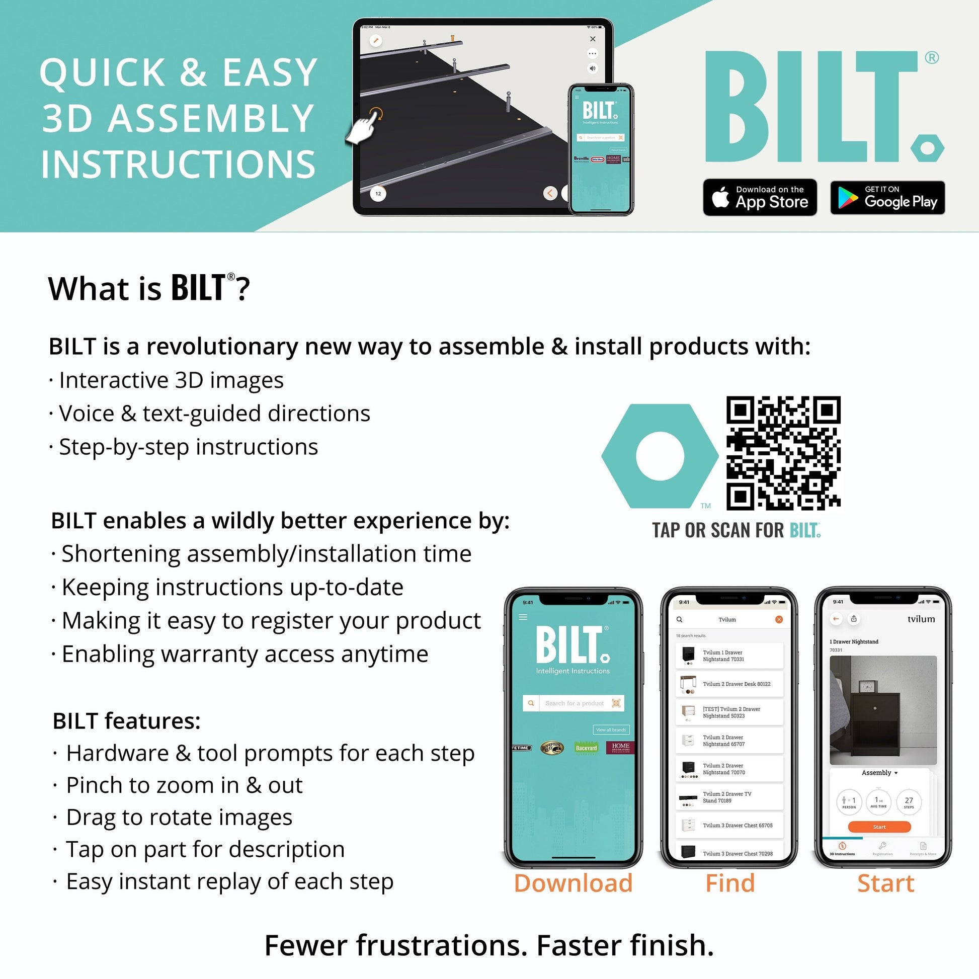 Assemblaggio interattivo 3D tramite BILT: le istruzioni per questo prodotto sono disponibili tramite l'app gratuita BILT. Scopri un modo rivoluzionario per assemblare e installare il prodotto con comandi vocali, testo e immagini animate interattive.