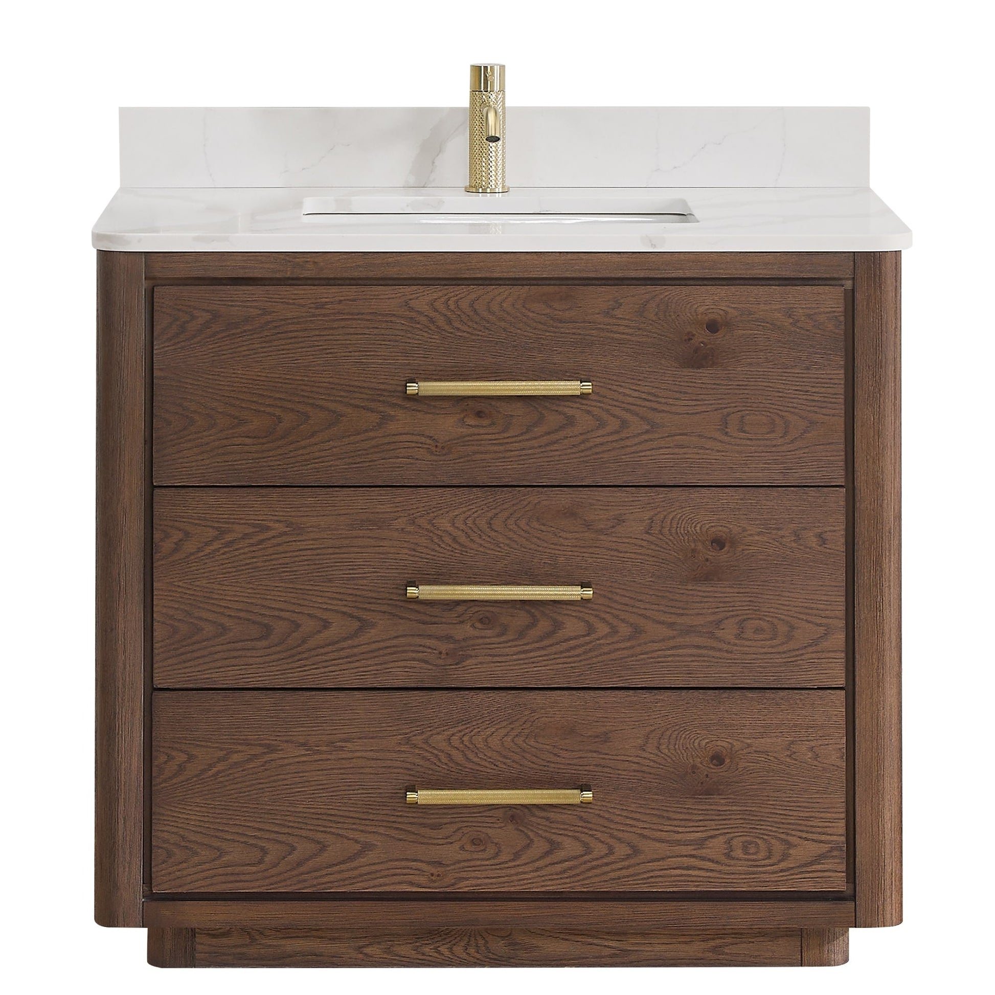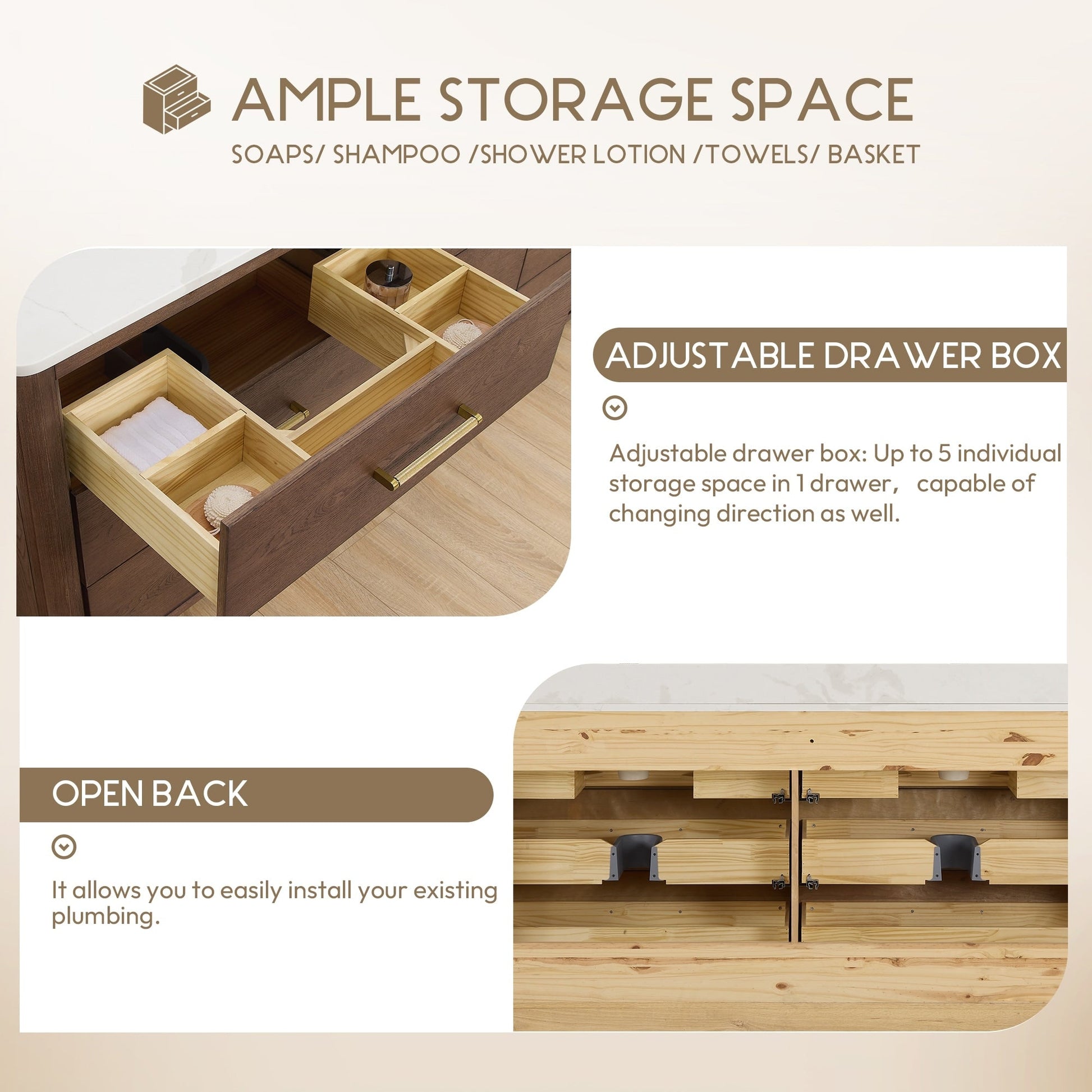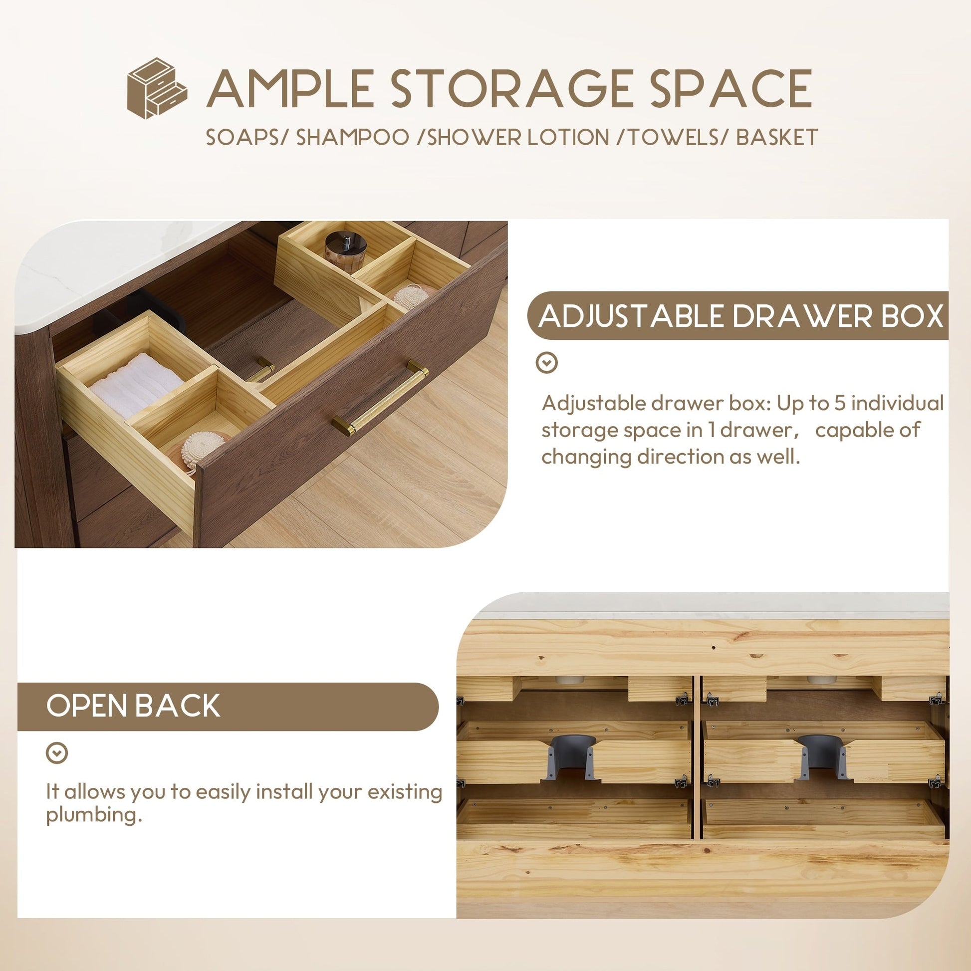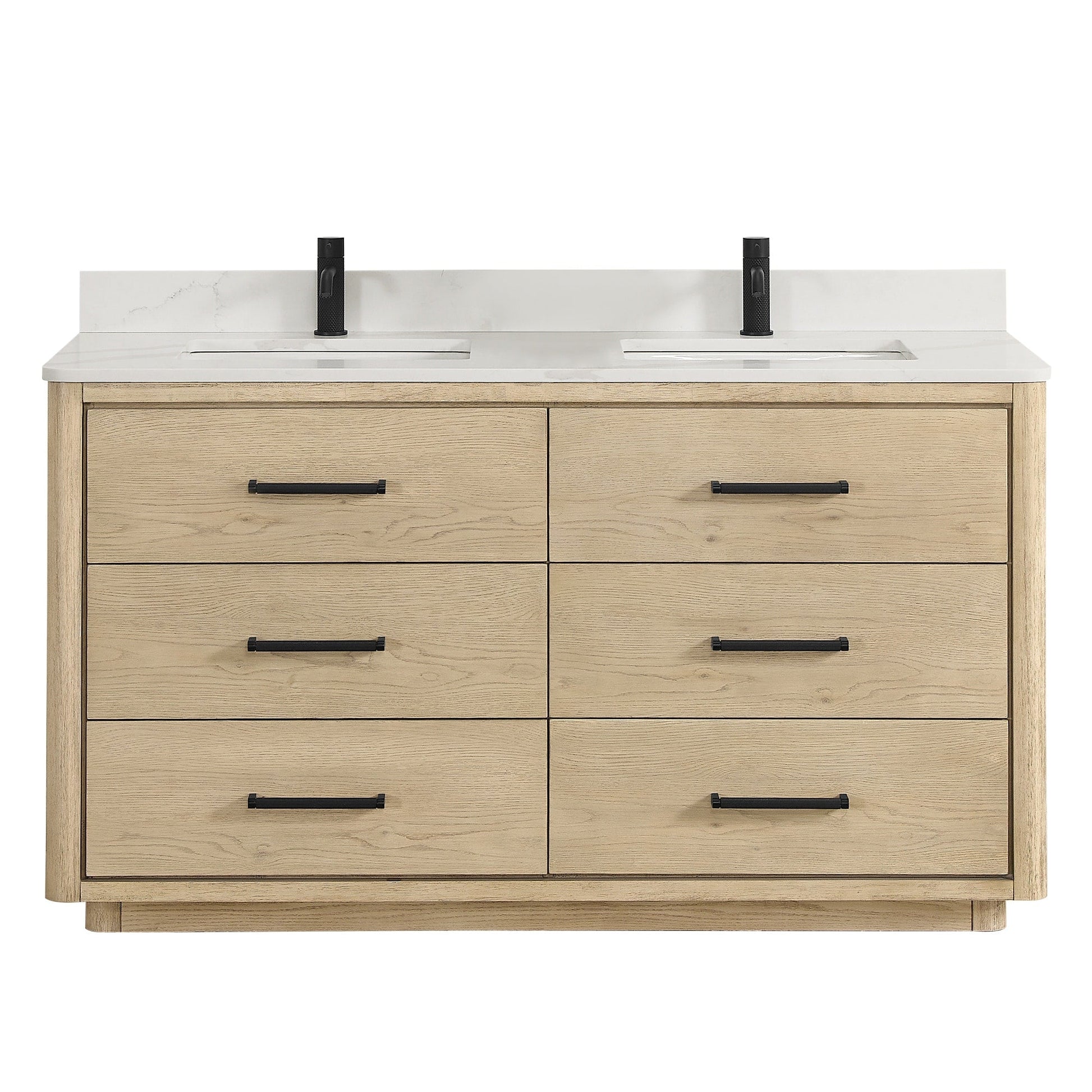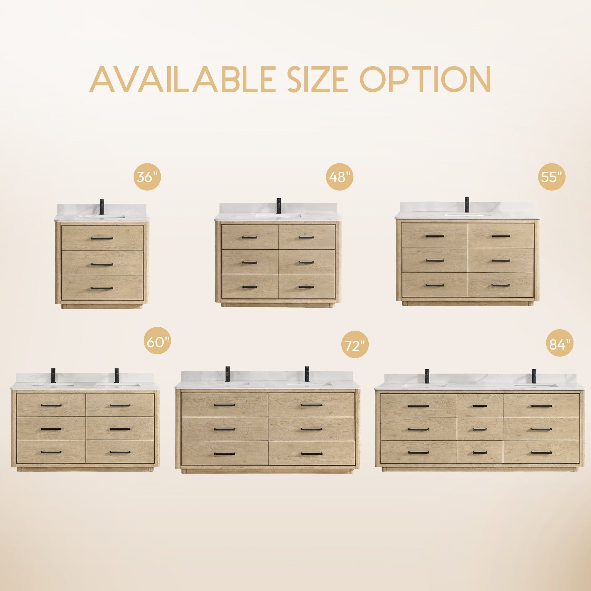Trasforma il tuo bagno in un'oasi di stile e raffinatezza con il nostro mobile bagno freestanding della serie Porto, un pezzo che incarna la raffinata artigianalità e la praticità quotidiana. Questo raffinato mobile combina il calore e l'eleganza del rovere massello con il candido quarzo bianco, creando un look invitante e visivamente accattivante. I profondi cassetti a coda di rondine con divisori ti permettono di tenere i tuoi oggetti essenziali ben nascosti e organizzati.