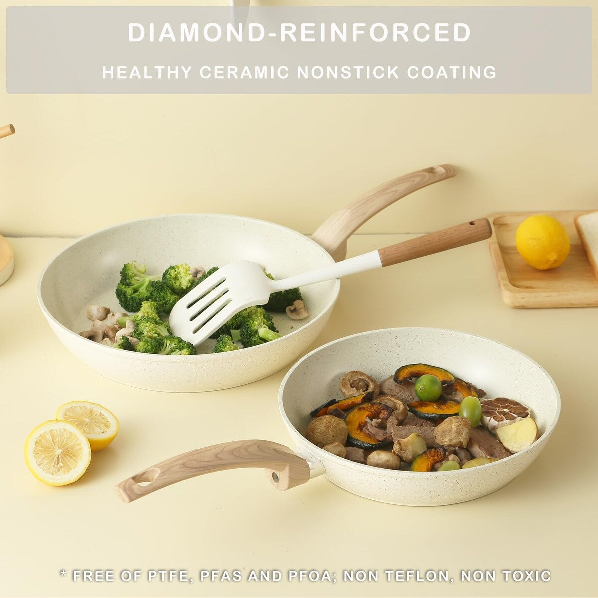 Set completo: set da cucina da 8 pezzi per l'uso quotidiano: padelle da 9,5 pollici e 11 pollici, padella da 4,6 QT con coperchio, casseruola da 1,5 QT con coperchio, pentola da 5 QT con coperchio Rivestimento antiaderente in ceramica ecologico: prodotti certificati SGS e TUV, 100% privi di PFOS e PFOA, le nostre pentole garantiscono una cottura quotidiana sempre più sicura e sana. Interno senza rivetti per evitare incrostazioni e accumuli di cibo. Utilizzando una spugna morbida o un canovaccio, è possibile rimuovere facilmente le macchie d'olio. Si prega di non utilizzare spazzole affilate o appuntite, che potrebbero danneggiare lo strato antiaderente. Disponibile sulla maggior parte dei fornelli: la base altamente conduttiva magnetica consente alle nostre pentole antiaderenti di funzionare su tutti i piani cottura, come quelli elettrici, alogeni, in ceramica, a gas, a induzione ecc. Il design del fondo esteso e spesso rende inoltre le pentole resistenti e si riscaldano rapidamente e in modo uniforme. Aggiungi versatilità alla tua cucina: progettate per usi professionali multi-cottura, le nostre pentole contengono quasi tutti gli utensili essenziali e sono ideali per ogni cucina. Puoi preparare le tue colazioni, uova, verdure e carni preferite con meno olio, per una dieta sana. Assistenza e garanzia: ogni utensile da cucina è sottoposto a rigorosi controlli. Se ricevete merce difettosa a causa della consegna, vi preghiamo di contattare direttamente il venditore. Non abbiate dubbi, grazie. Vi garantiamo la migliore soluzione.