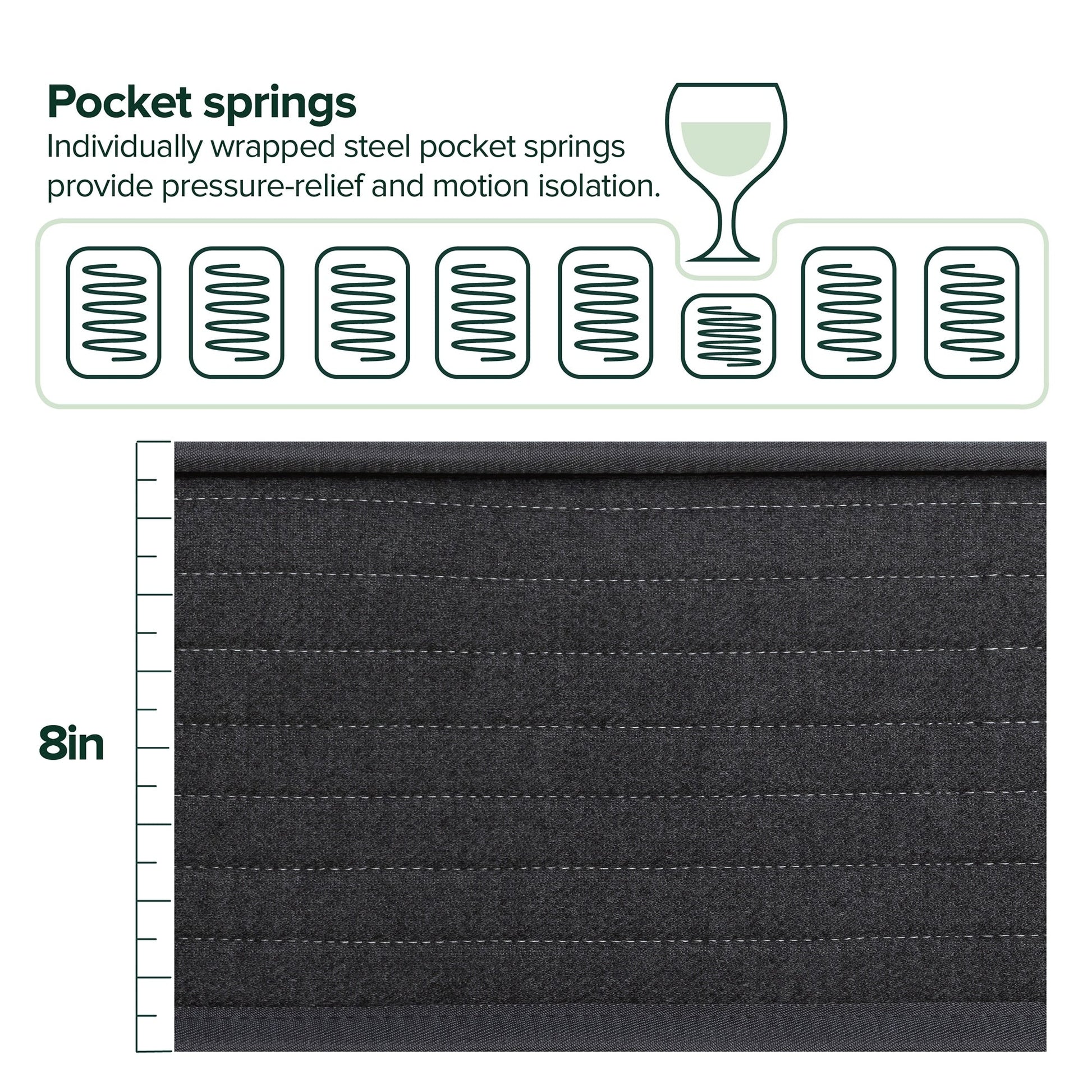 SUPPORTO ALLEVIANTE LA PRESSIONE - Grazie alla trapuntatura in fibra, alla schiuma Zinus Comfort Foam® e alle molle insacchettate che forniscono un sollievo dinamico dalla pressione per le articolazioni e la colonna vertebrale, rannicchiarsi su questo materasso ti farà sentire sostenuto e senza dolore per tutta la notte.