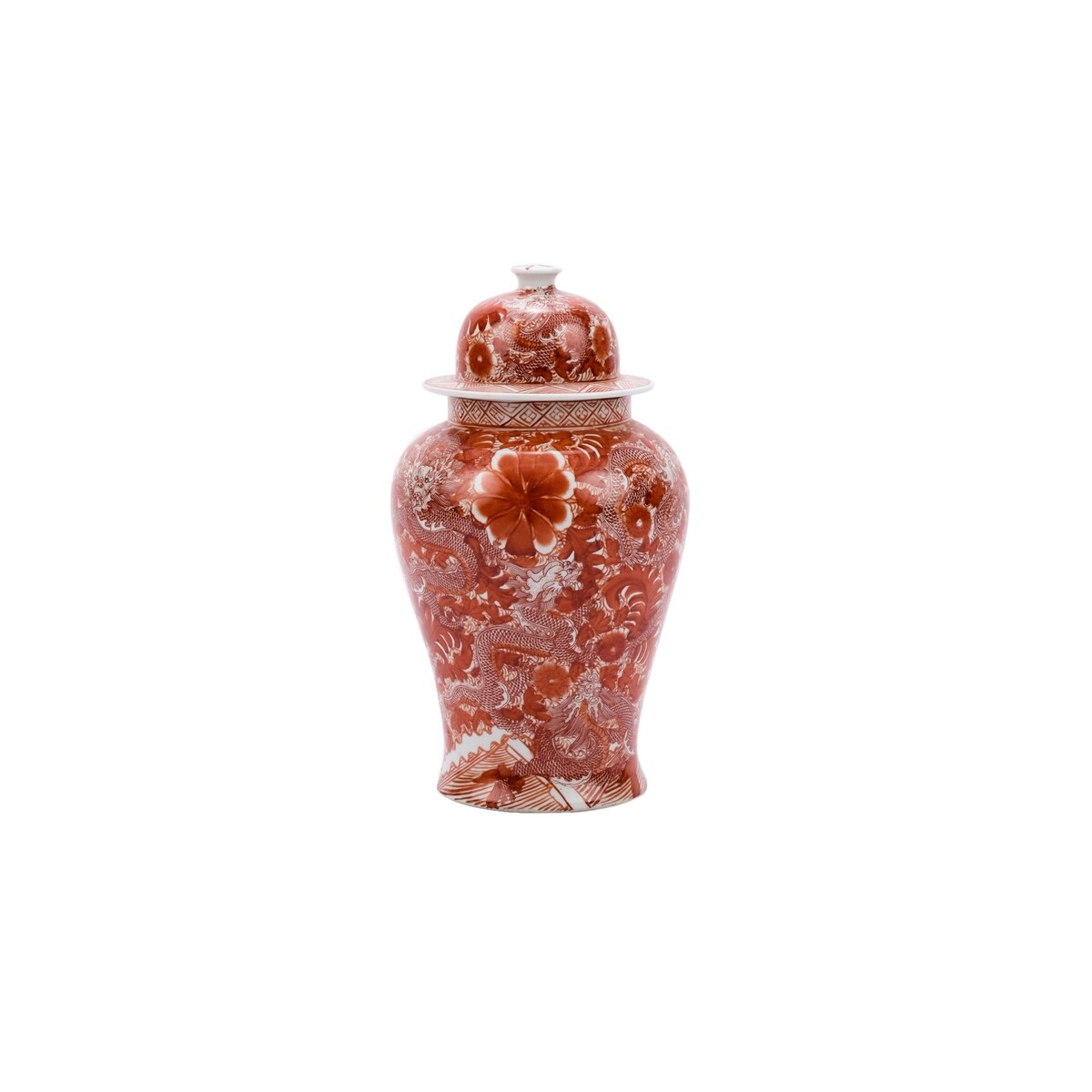 Tempio decorativo con pino dorato e gru con drago e motivo floreale
