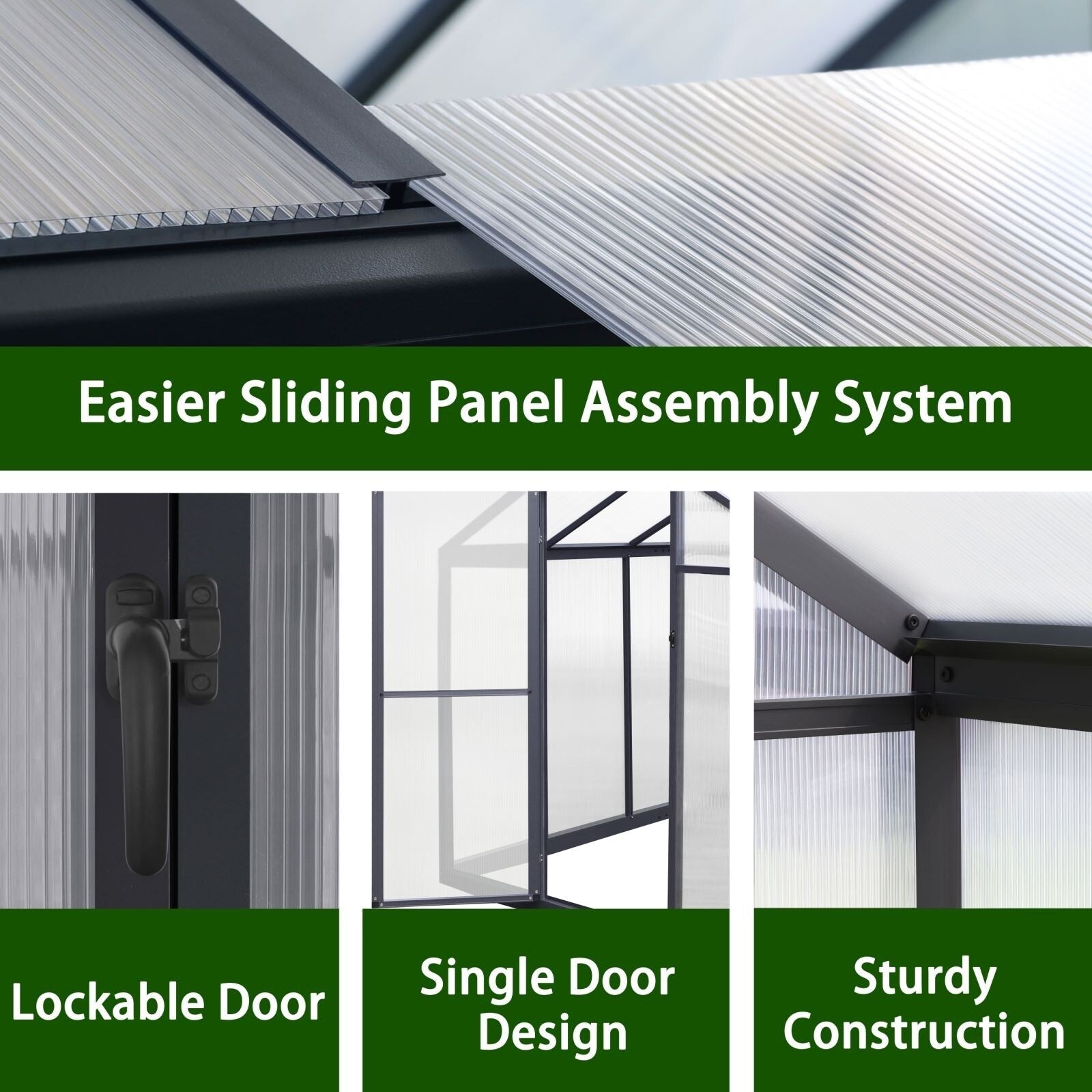 La serra in alluminio è dotata di pannelli in policarbonato resistenti ai raggi UV che non solo proteggono le piante dai dannosi raggi UV, ma ne garantiscono anche una crescita ottimale. Questa caratteristica aiuta le piante a prosperare tutto l'anno, indipendentemente dalla posizione.