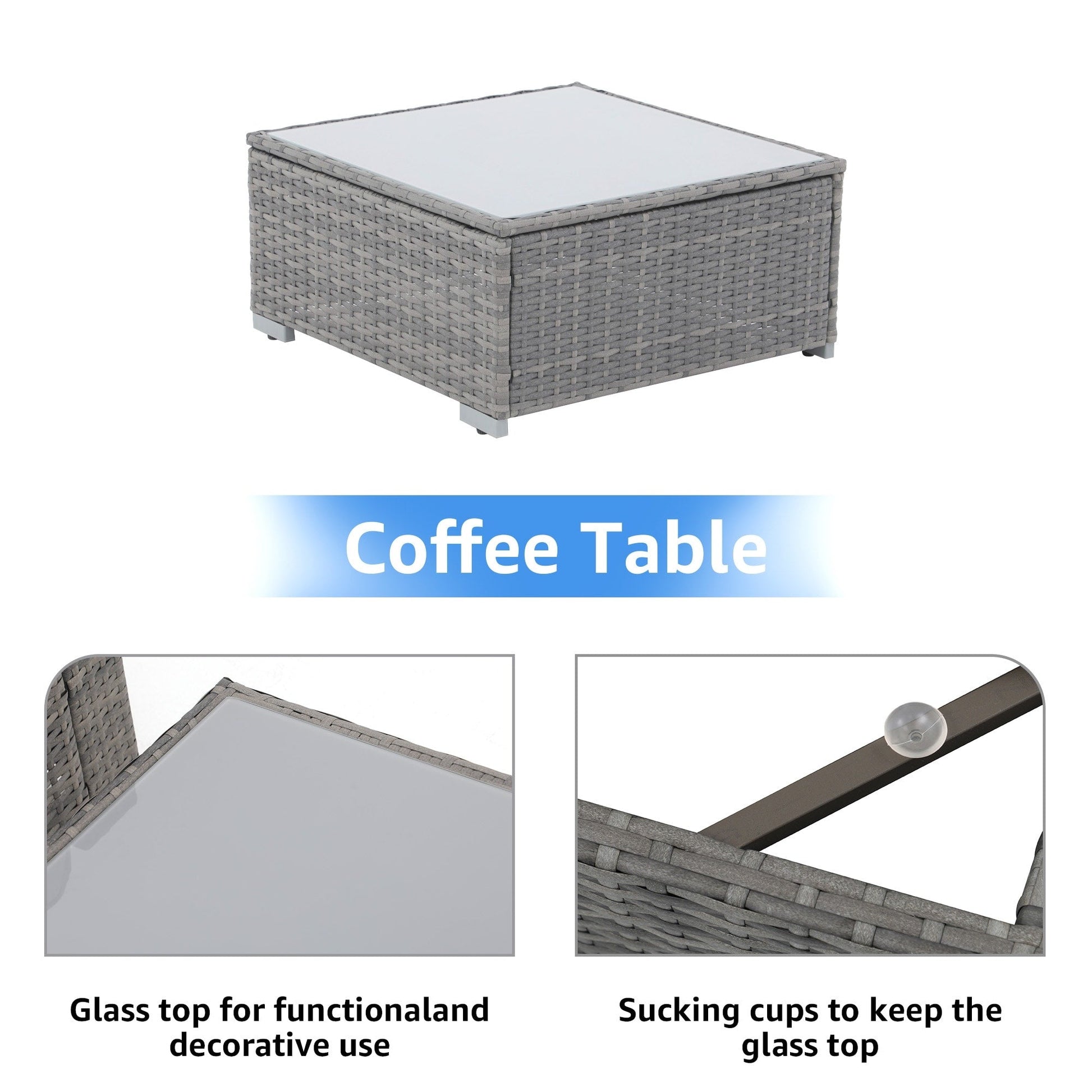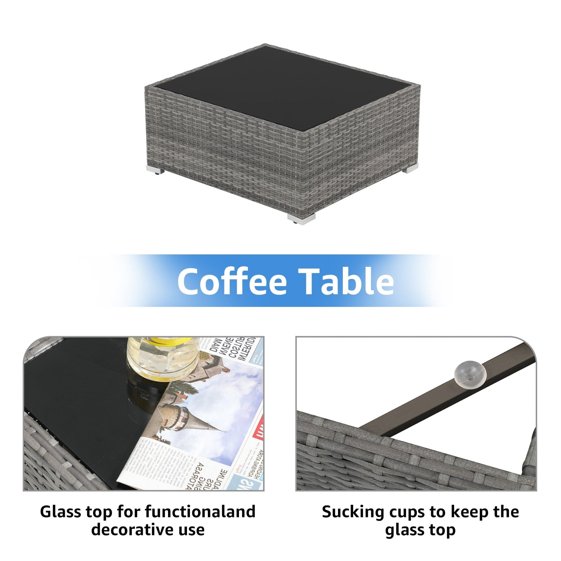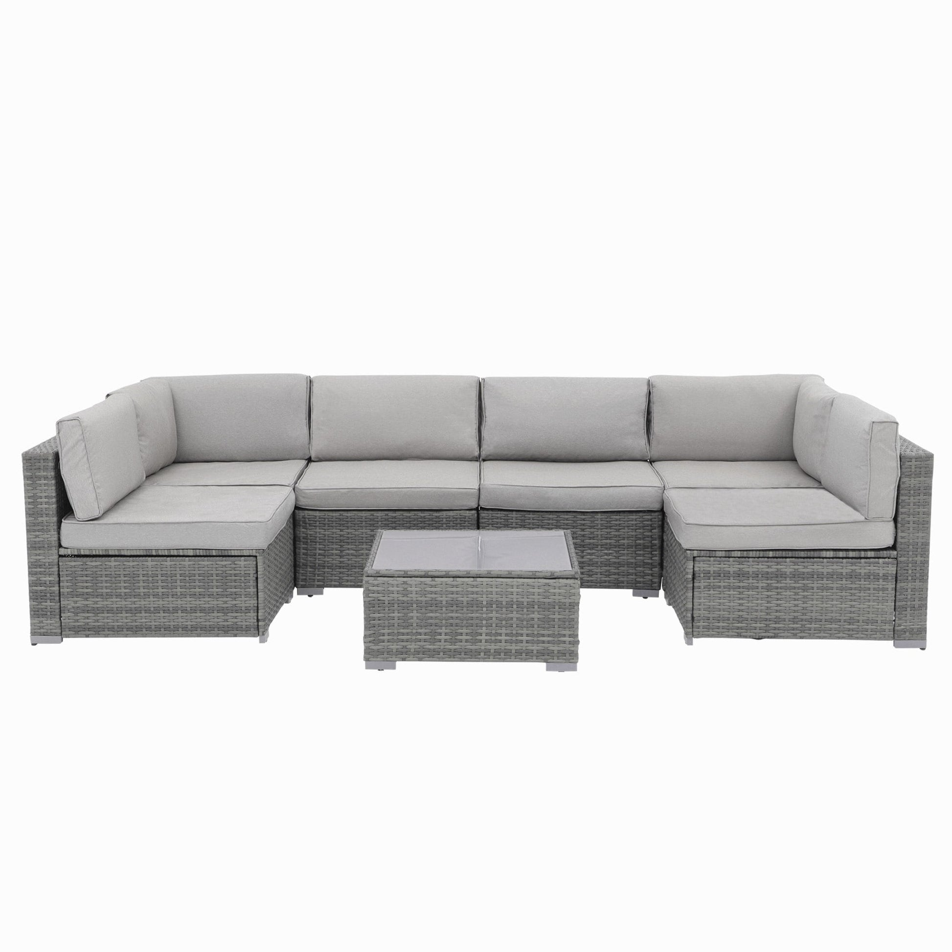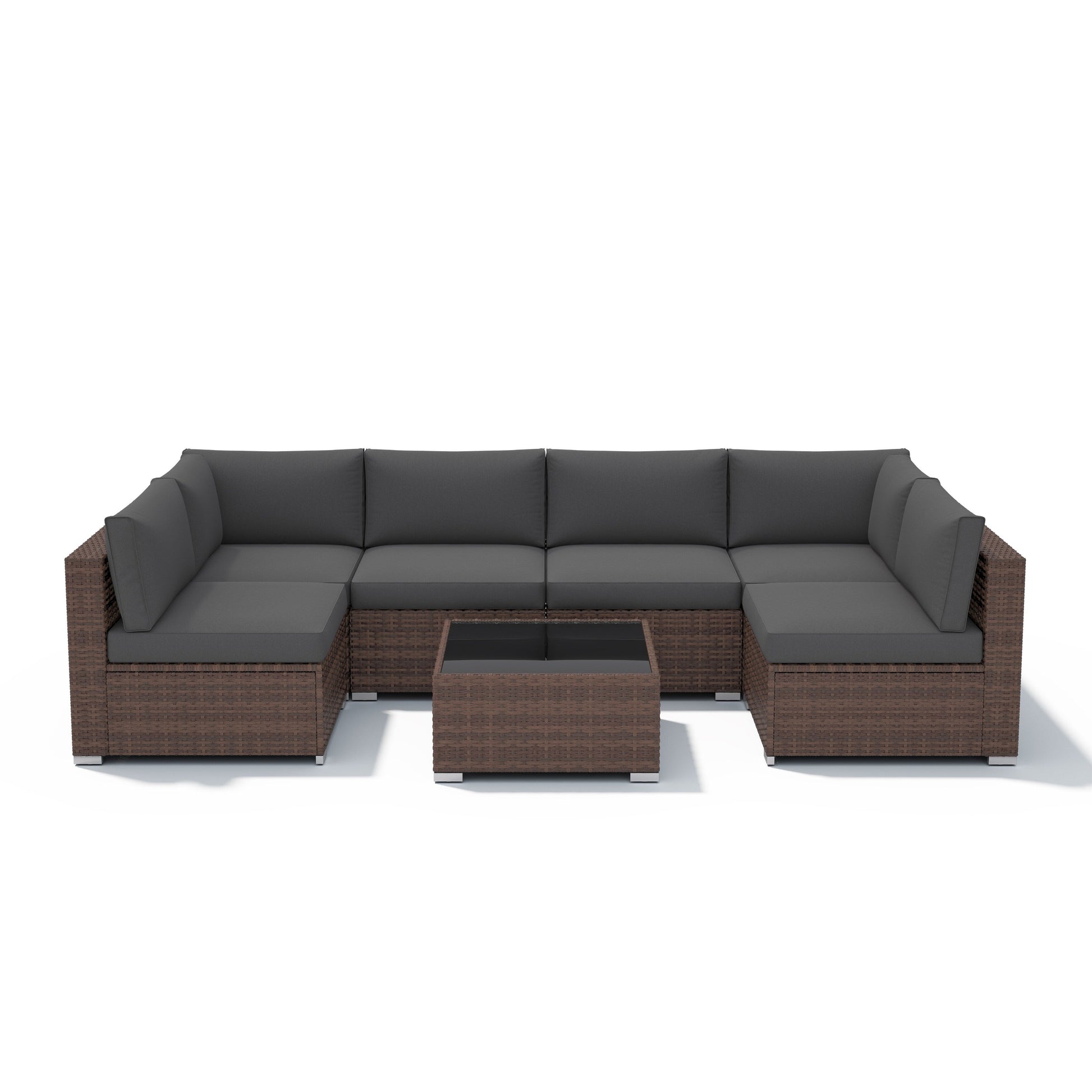 Aggiungi eleganza e comfort al tuo spazio esterno con il set di divani componibili da esterno in vimini/acciaio da 7 pezzi. Il set è caratterizzato da una robusta struttura in acciaio rivestita in resistente vimini resistente alla ruggine e agli agenti atmosferici. I cuscini su ogni seduta offrono il massimo comfort. Grazie al facile montaggio e alle diverse configurazioni disponibili, puoi personalizzare il set in base alle tue esigenze. Inoltre, è incluso un tavolino laterale per una maggiore funzionalità e decorazione.