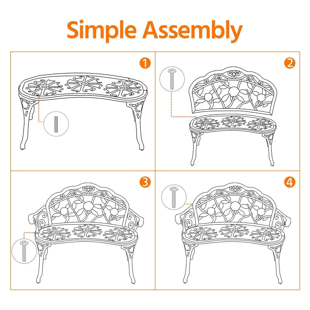 • Safe and User-Friendly: With a weight capacity of 227 kg/ 500 lb, this outdoor metal bench is sturdy and reliable. The edge-free design ensures safe sitting, with all possible sharp edges rounded for user comfort.